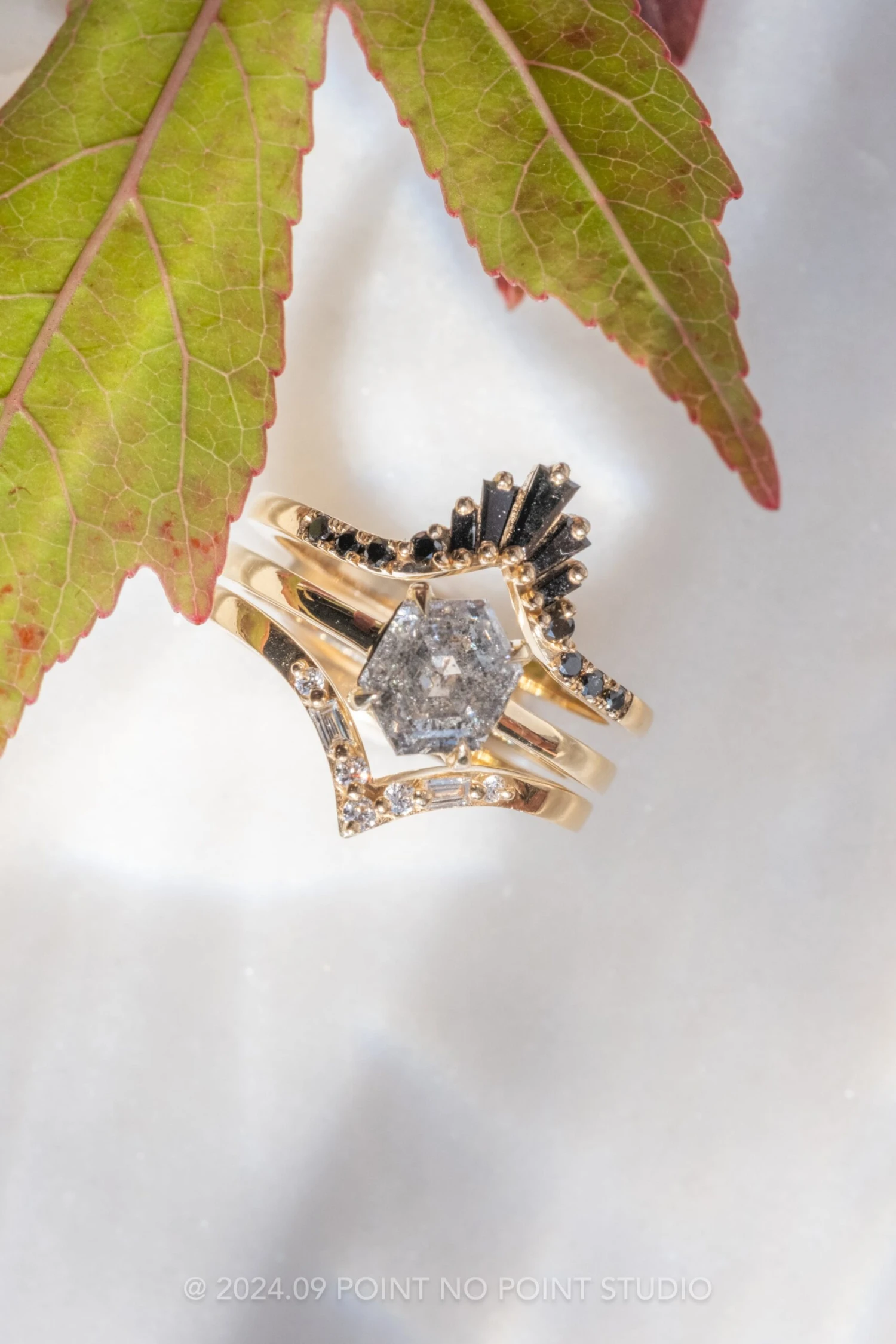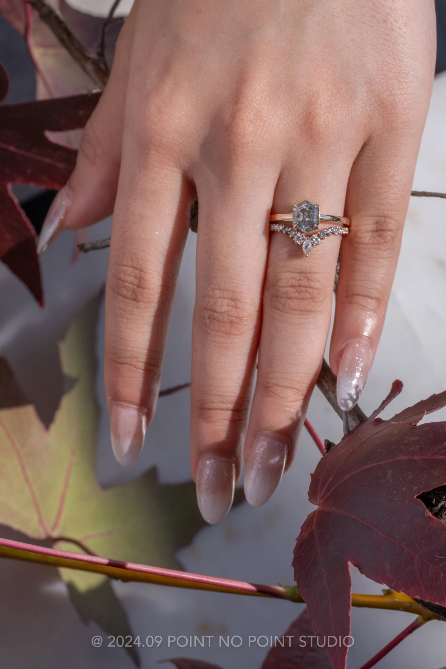 Canadian Salt and Pepper Hexagon Diamond Engagement Ring