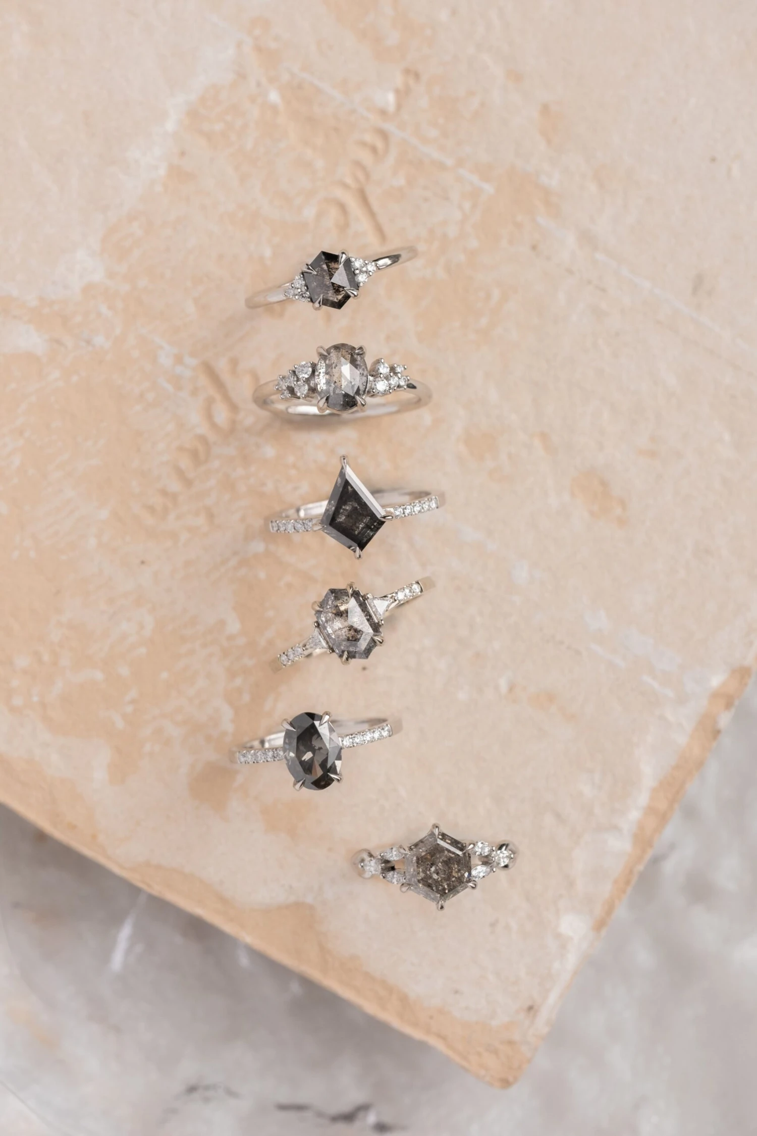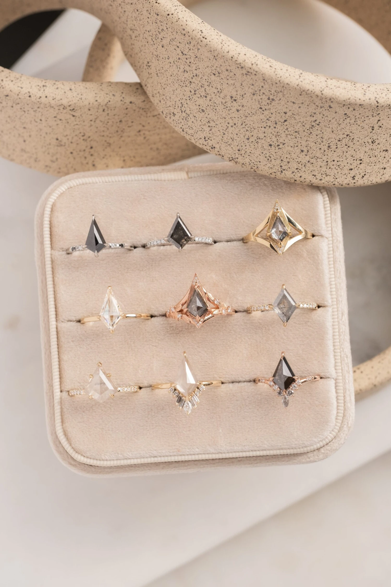 Black Speckled Kite Diamond Engagement Ring