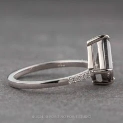 This engagement ring features a mesmerizing 1.64 carat black speckled kite shaped brilliant cut diamond. This top-quality and all-natural stone is un-enhanced and has not been heat treated in any way. Flanked on either side by five sparkly GHSI white round accent diamonds down each side of the band to complete the look!