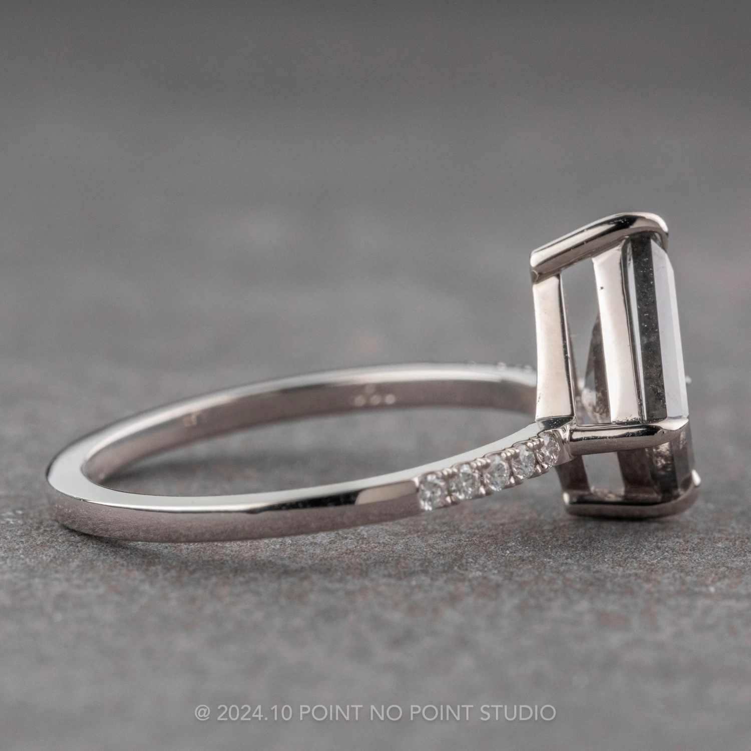 Included with your order – A Point No Point Studio digital ring certificate on a branded PNP USB drive, black velvet clam shell box, and a polishing cloth.