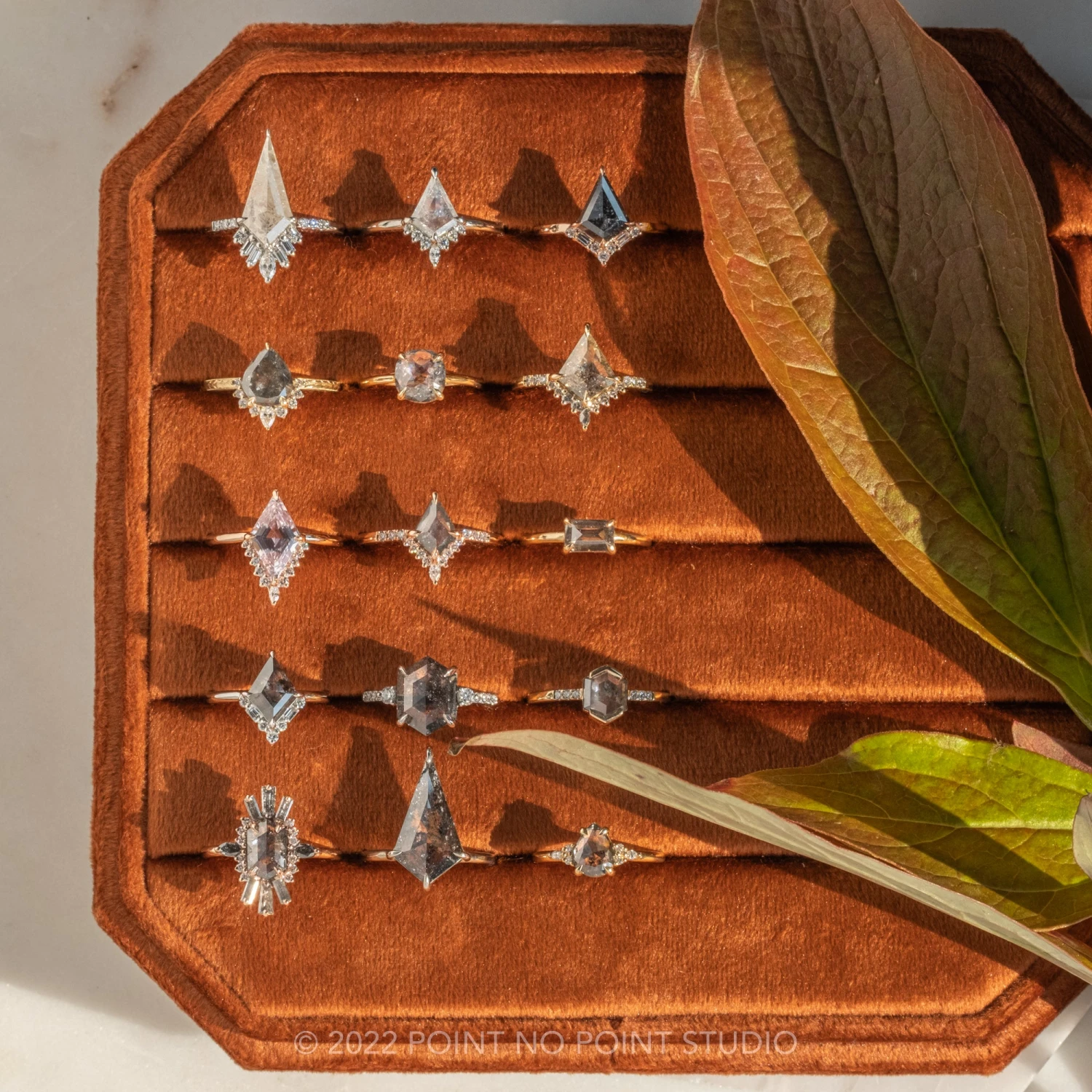 Included with your order – A Point No Point Studio digital ring certificate on a branded PNP USB drive, black velvet clam shell box, and a polishing cloth.