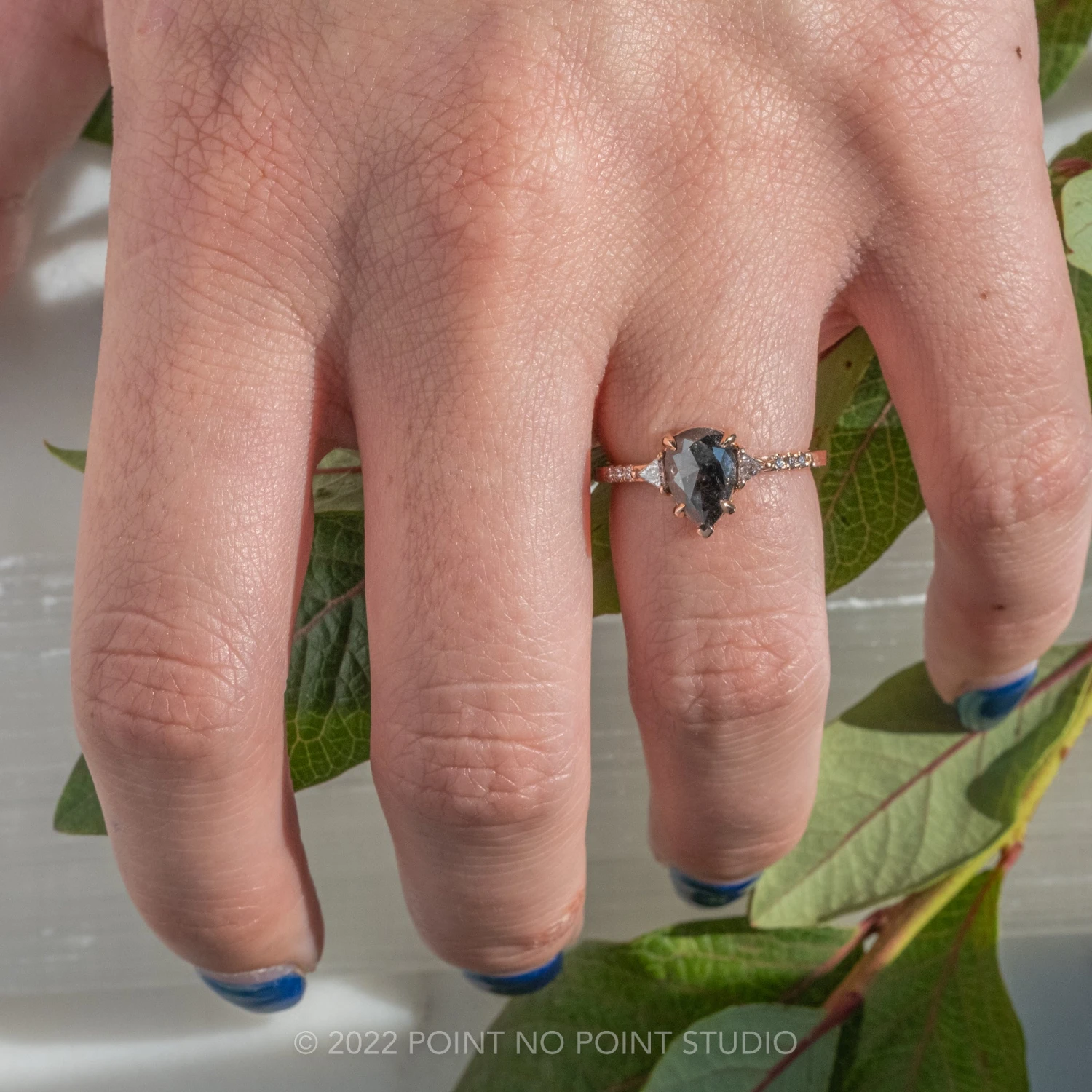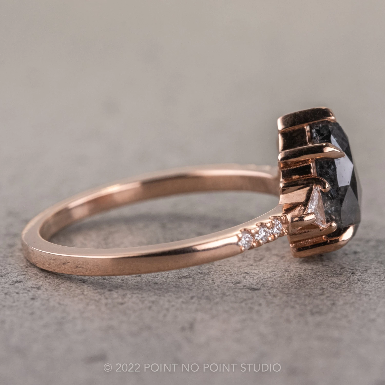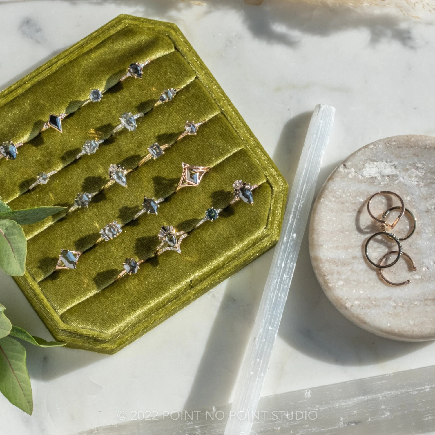 Included with your order – A Point No Point Studio digital ring certificate on a branded PNP USB drive, black velvet clam shell box, and a polishing cloth.