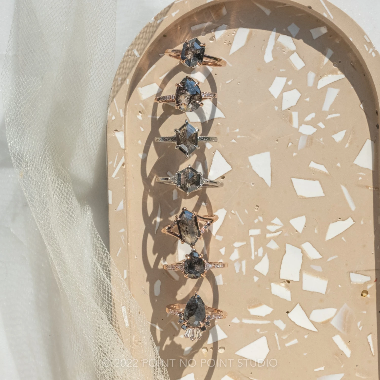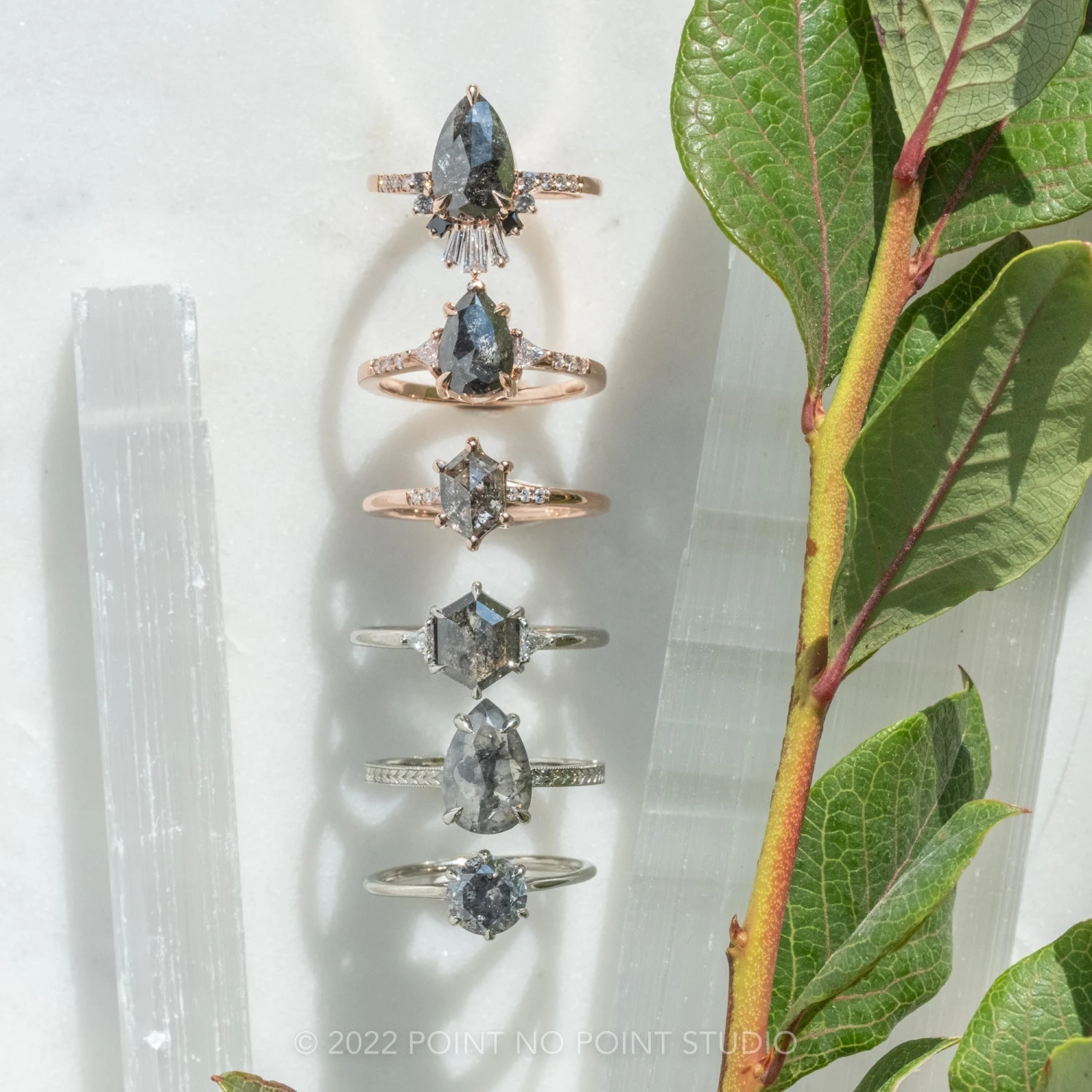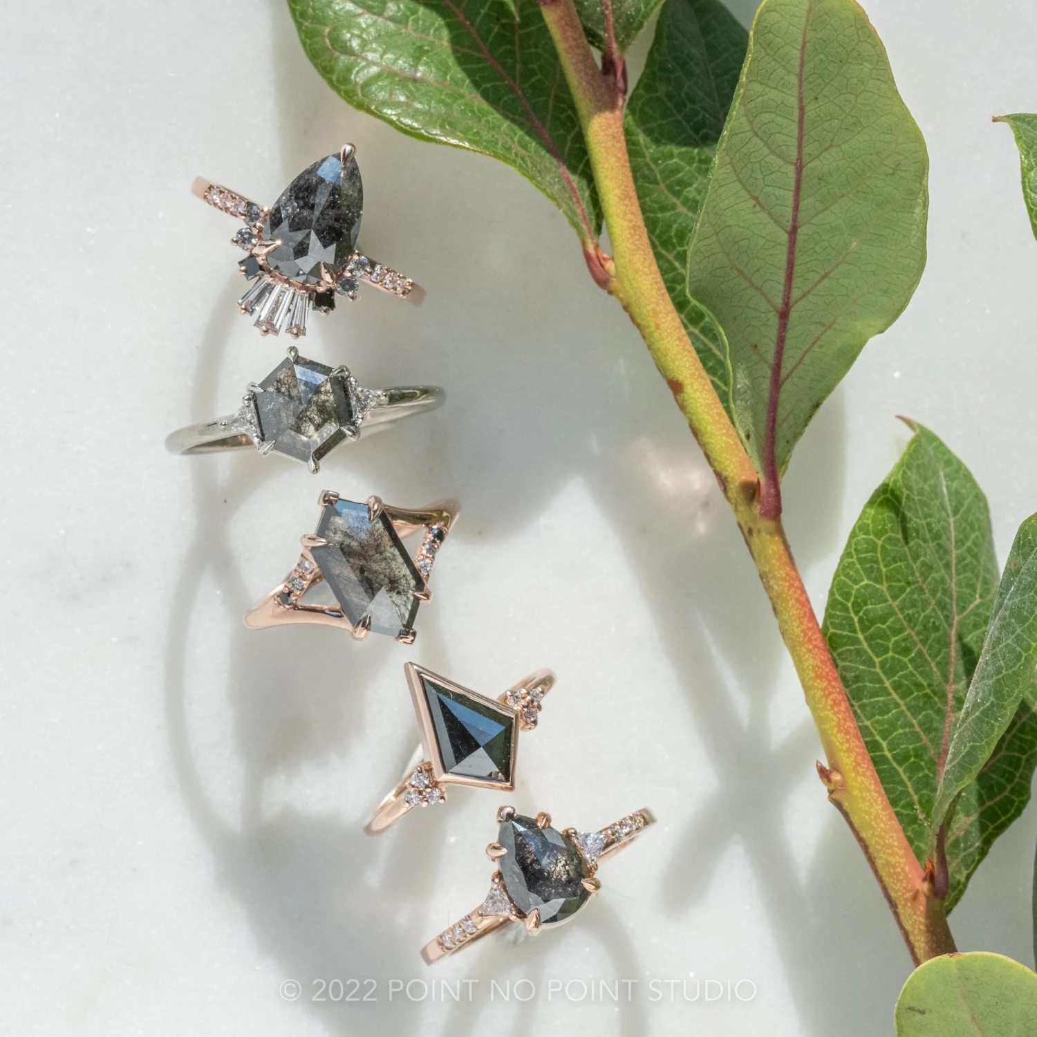 Included with your order – A Point No Point Studio digital ring certificate on a branded PNP USB drive, black velvet clam shell box, and a polishing cloth.