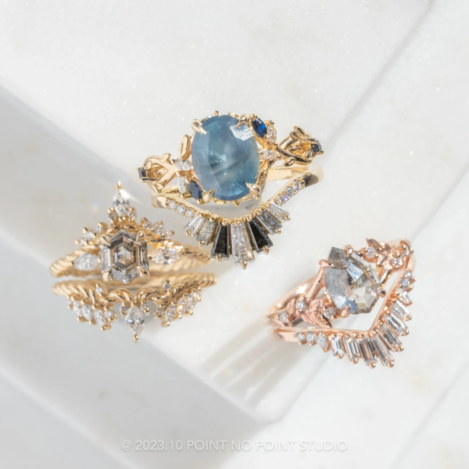 Wedding Rings: This engagement ring can be stacked with ANY of our hundreds of wedding ring options, we use the same engagement ring CAD measurements to build the wedding ring around it to ensure a great stacking set.