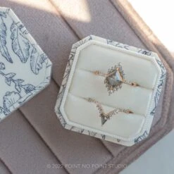 Included with your orderĀ – A Point No Point Studio digital ring certificate on a branded PNP USB drive, black velvet clam shell box, and a polishing cloth.