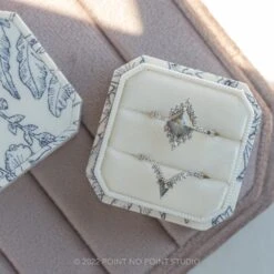 Included with your order – A Point No Point Studio digital ring certificate on a branded PNP USB drive, black velvet clam shell box, and a polishing cloth.