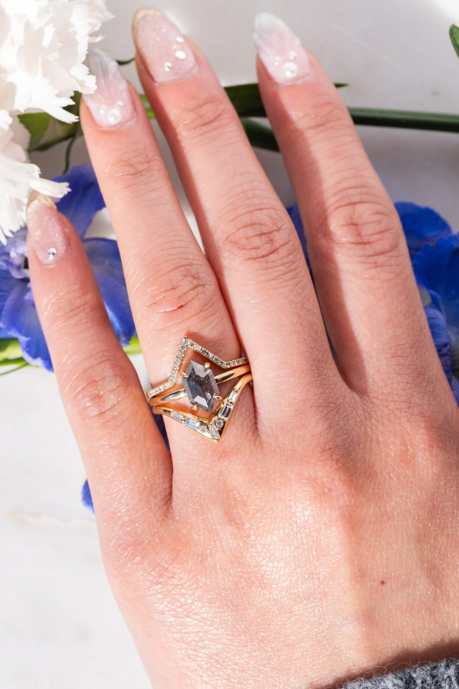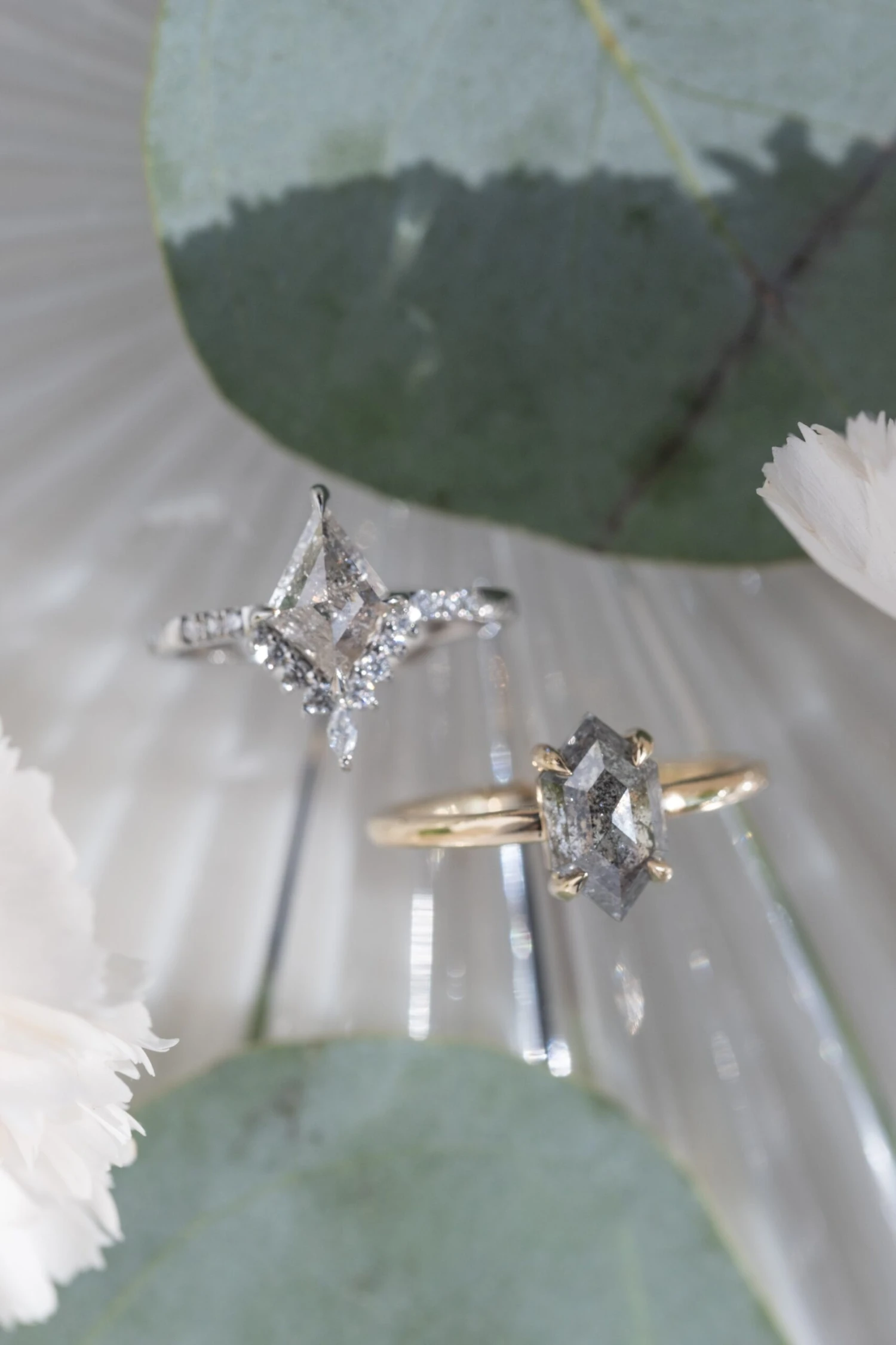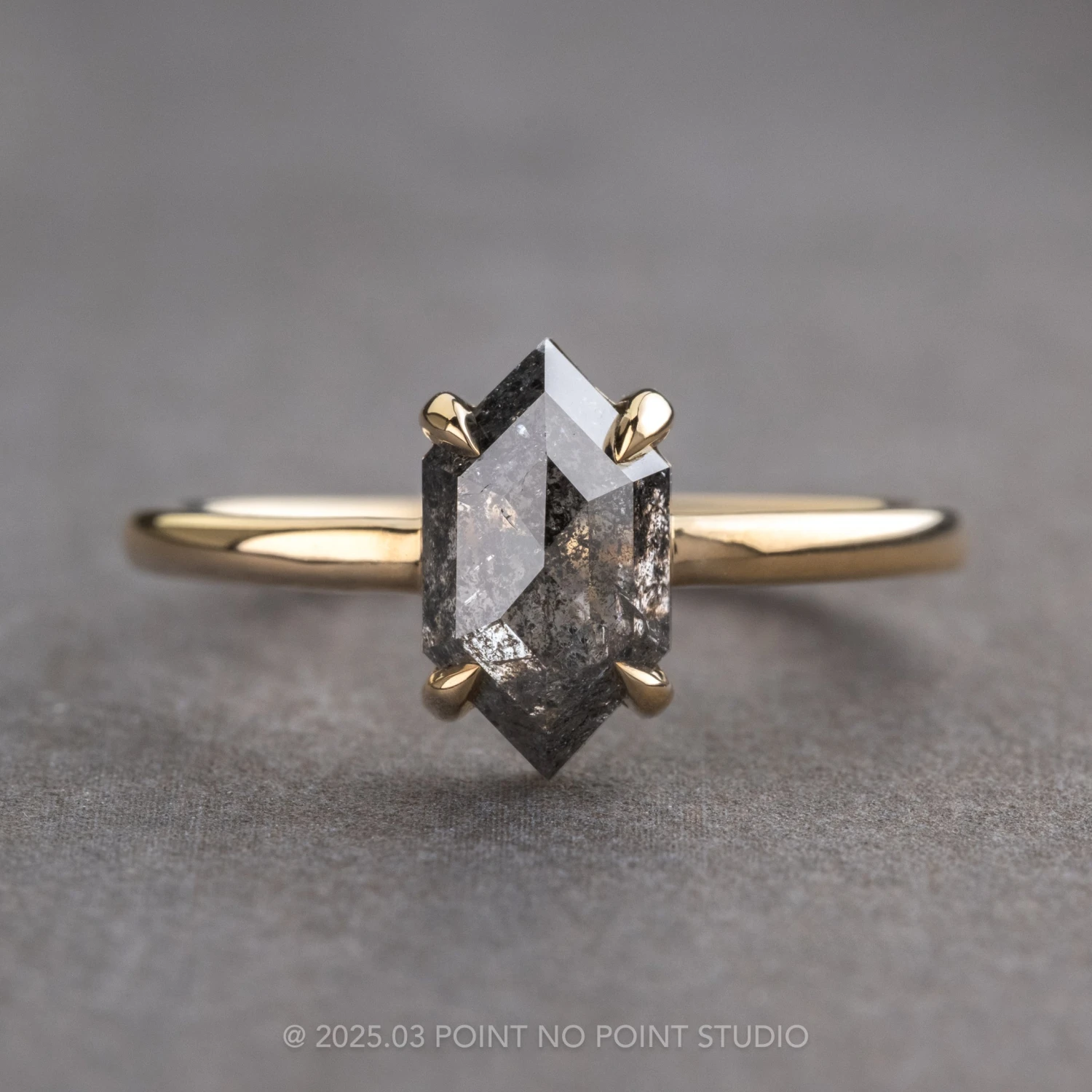 Black Speckled Hexagon Diamond Engagement Ring