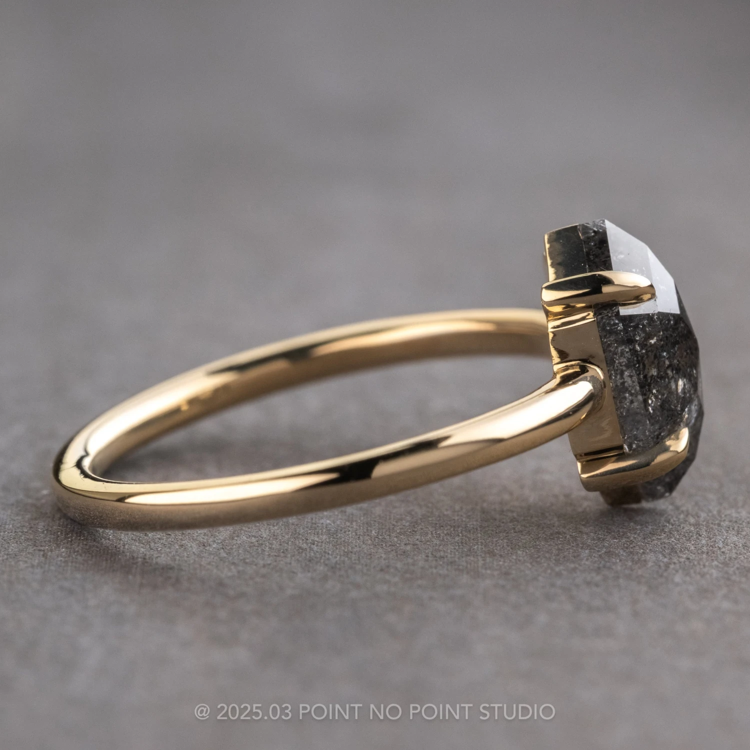 Included with your order – A Point No Point Studio digital ring certificate on a branded PNP USB drive, black velvet clam shell box, and a polishing cloth.Â