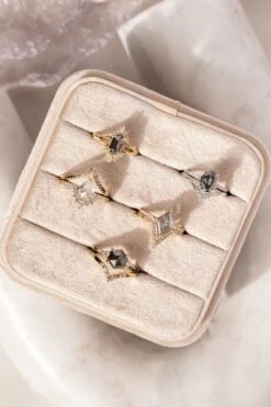 Included with your order – A Point No Point Studio digital ring certificate on a branded PNP USB drive, black velvet clam shell box, and a polishing cloth.