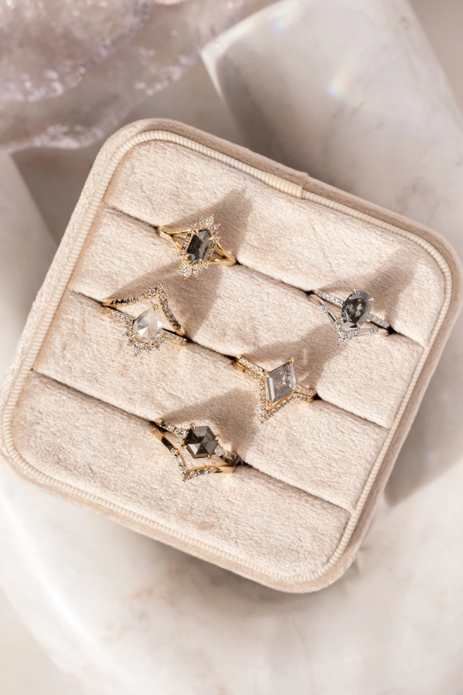 Wedding Rings: This engagement ring can be stacked with ANY of our hundreds of wedding ring options, we use the same engagement ring CAD measurements to build the wedding ring around it to ensure a great stacking set.Â