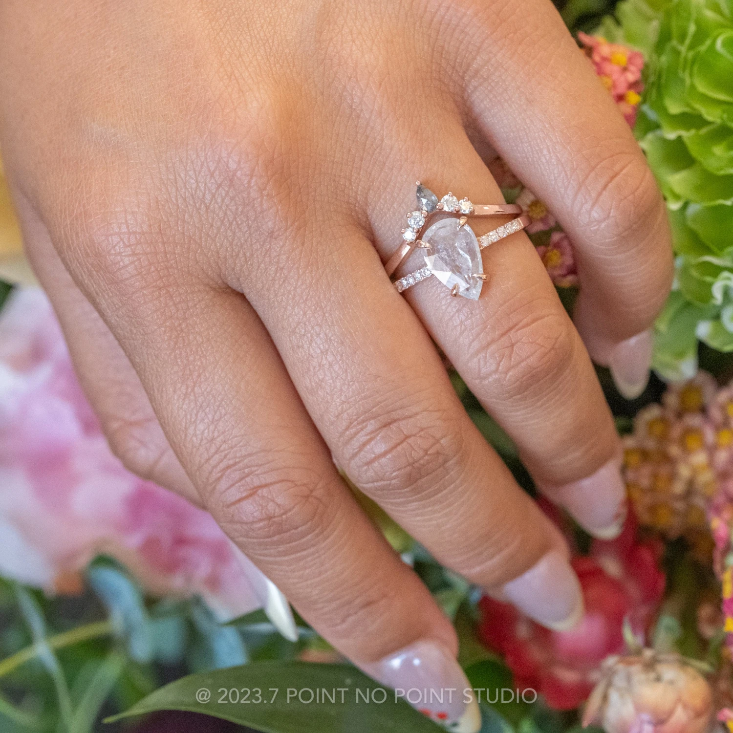 Wedding Rings: This engagement ring can be stacked with ANY of our hundreds of wedding ring options, we use the same engagement ring CAD measurements to build the wedding ring around it to ensure a great stacking set.Â