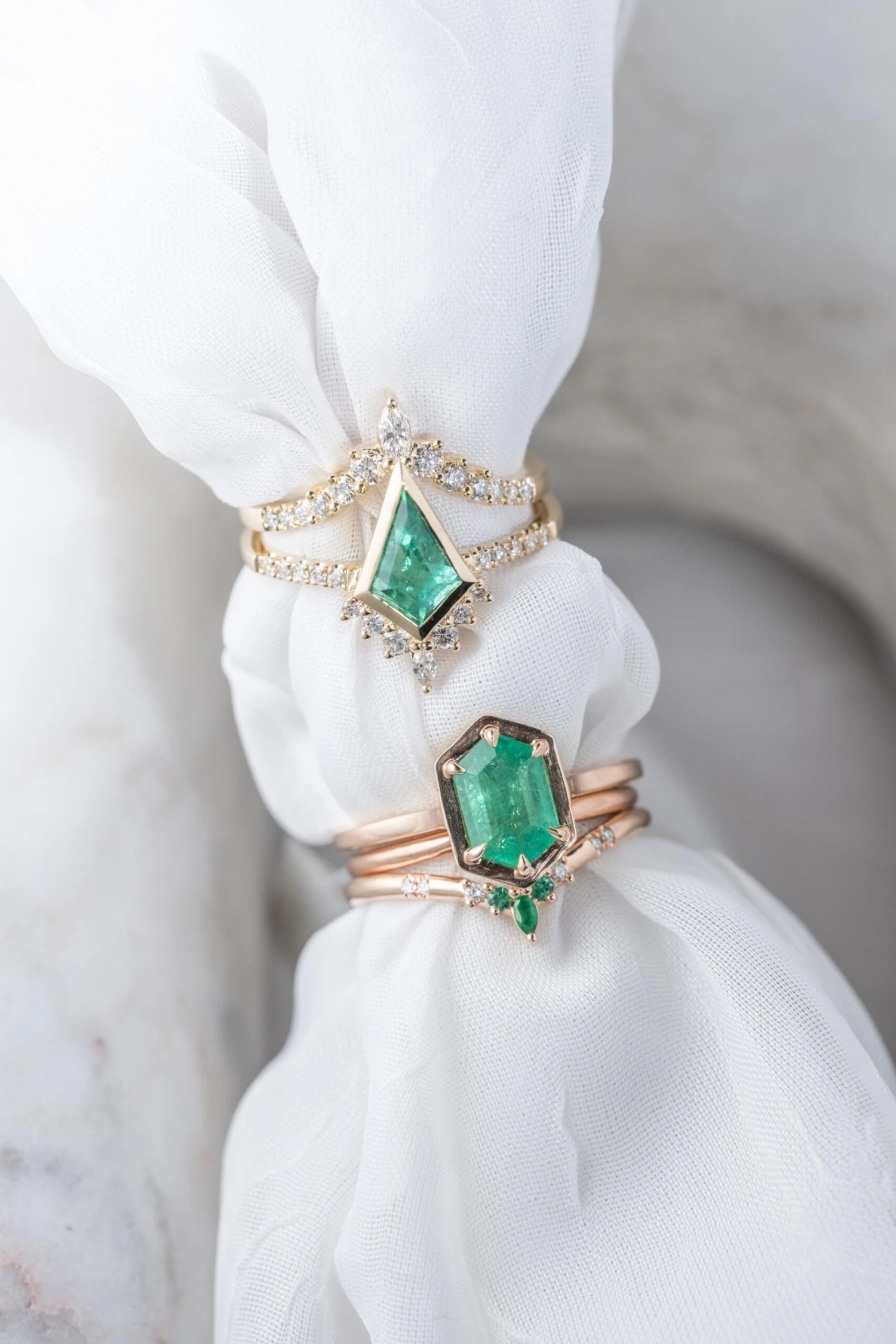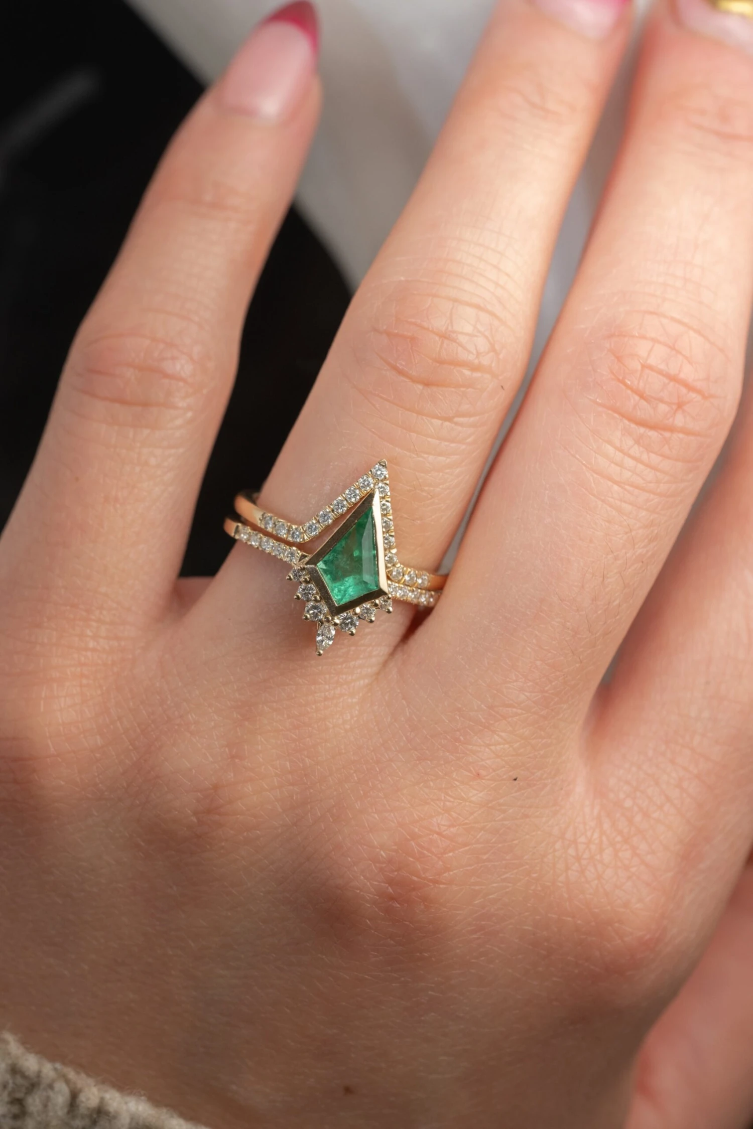 Kite Emerald and Diamond Engagement Ring