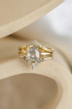 Wedding Rings: This engagement ring can be stacked with ANY of our hundreds of wedding ring options, we use the same engagement ring CAD measurements to build the wedding ring around it to ensure a great stacking set.Â