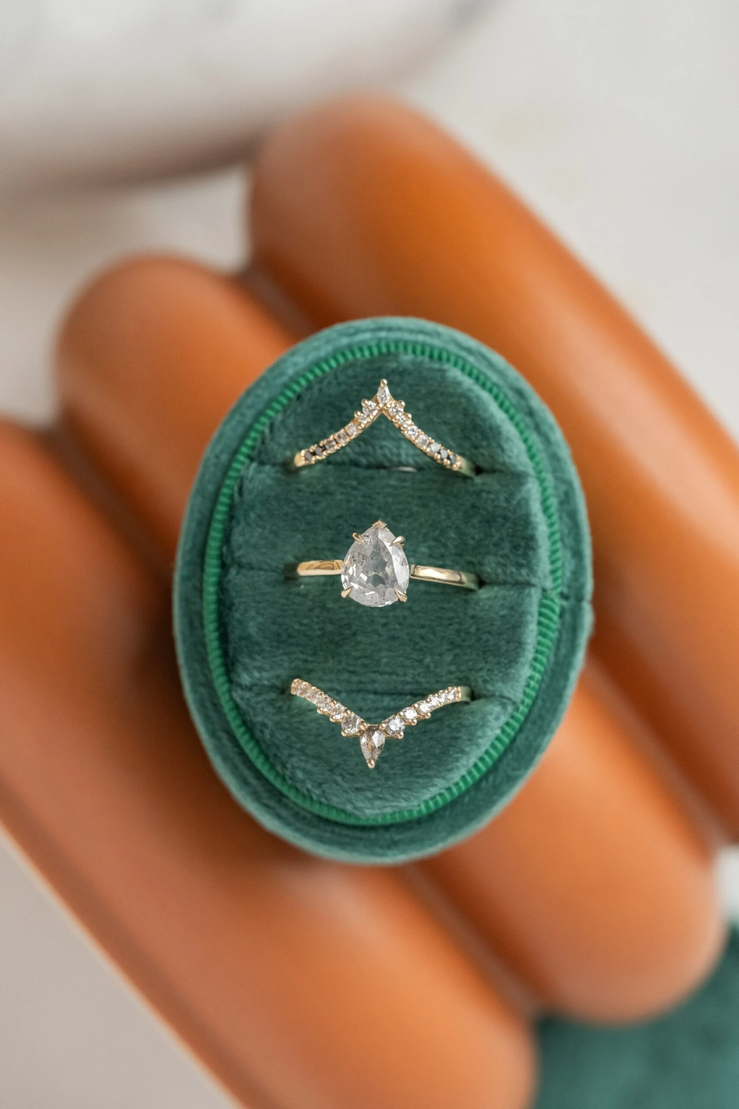 Shown pictured with our Ombre Robin, Salt and Pepper Pear and Extra Diamond Cassiopeia, Diamond Vintage Vivian and Willa wedding bands, sold separately here.Â