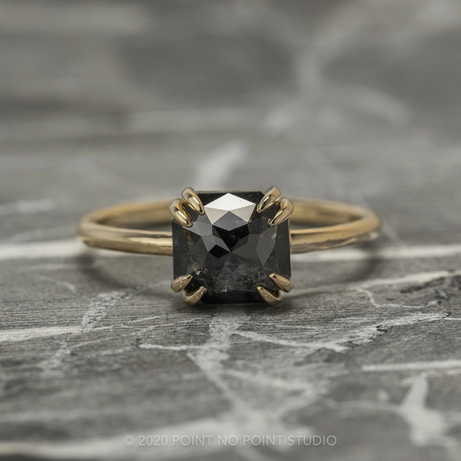 Included with your order – A Point No Point Studio digital ring certificate on a branded PNP USB drive, black velvet clam shell box, and a polishing cloth. Â
