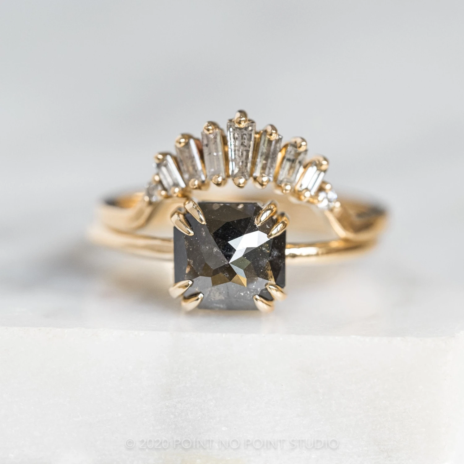 Wedding Rings: This engagement ring can be stacked with ANY of our hundreds of wedding ring options, we use the same engagement ring CAD measurements to build the wedding ring around it to ensure a great stacking set.Â