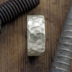 10mm 14k White Gold Mens Wedding Band, Hammered Matte