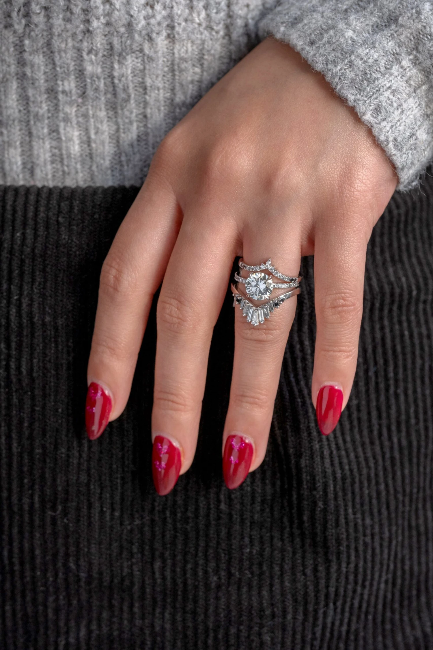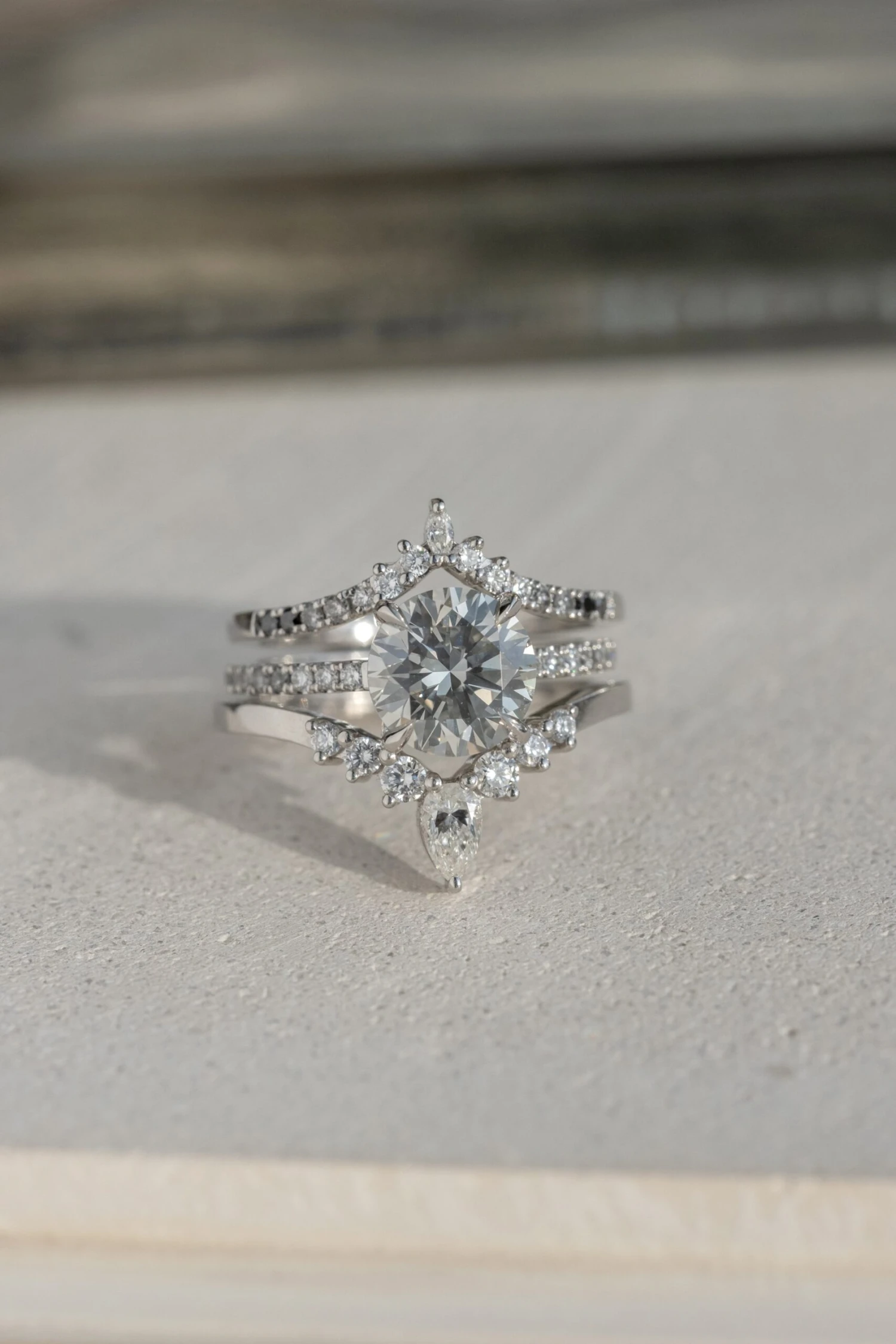 Wedding Rings: This engagement ring can be stacked with ANY of our hundreds of wedding ring options, we use the same engagement ring CAD measurements to build the wedding ring around it to ensure a great stacking set.Â