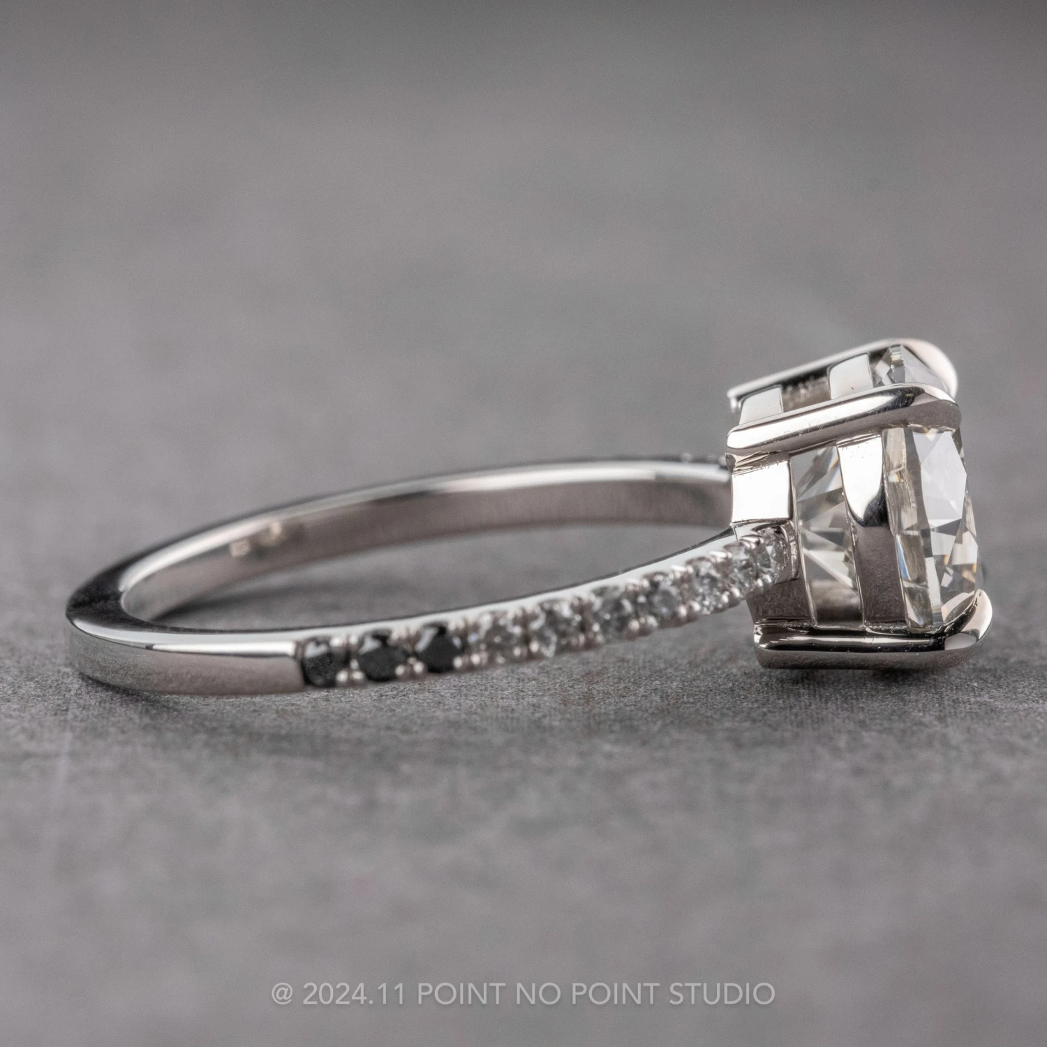 Included with your order – A Point No Point Studio digital ring certificate on a branded PNP USB drive, black velvet clam shell box, and a polishing cloth.
