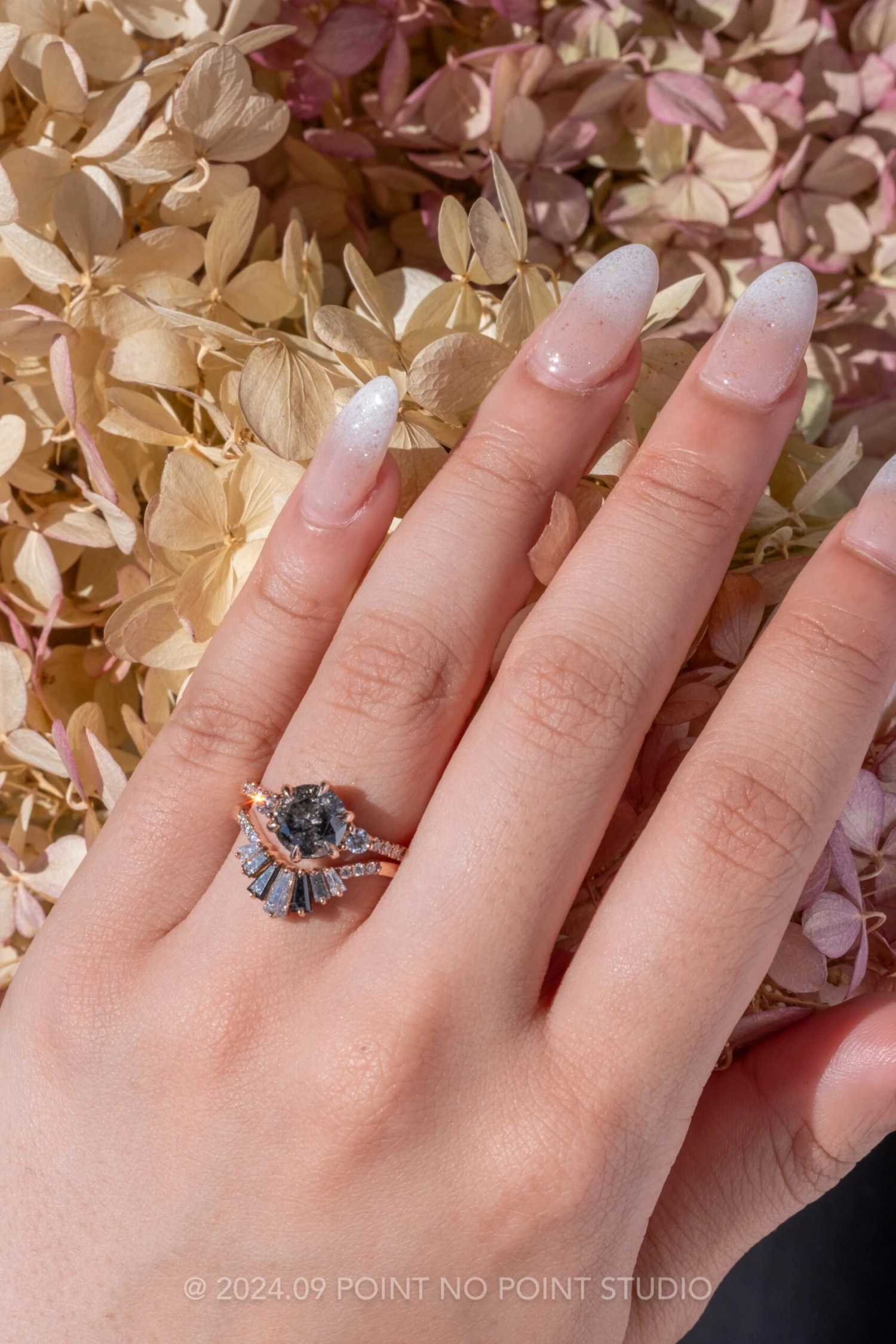 Wedding Rings: This engagement ring can be stacked with ANY of our hundreds of wedding ring options, we use the same engagement ring CAD measurements to build the wedding ring around it to ensure a great stacking set.Â