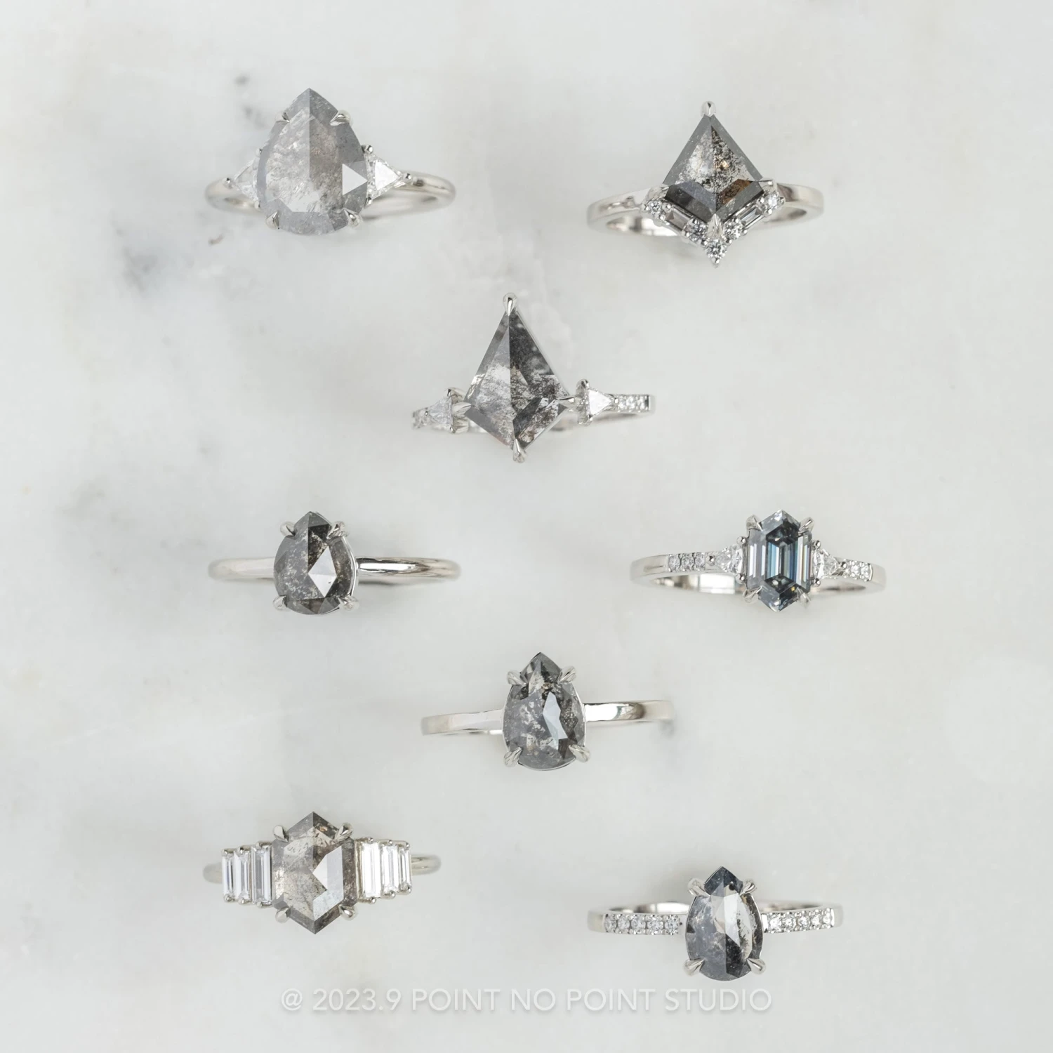 Salt and Pepper Pear Diamond Engagement Ring