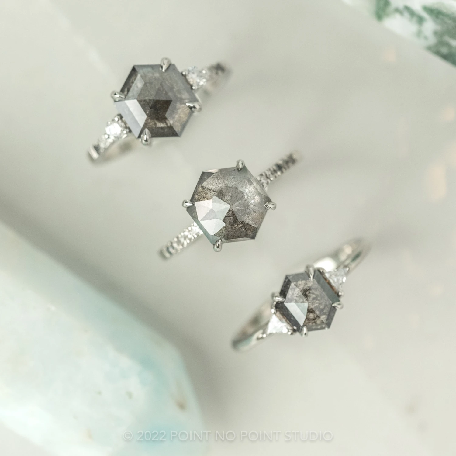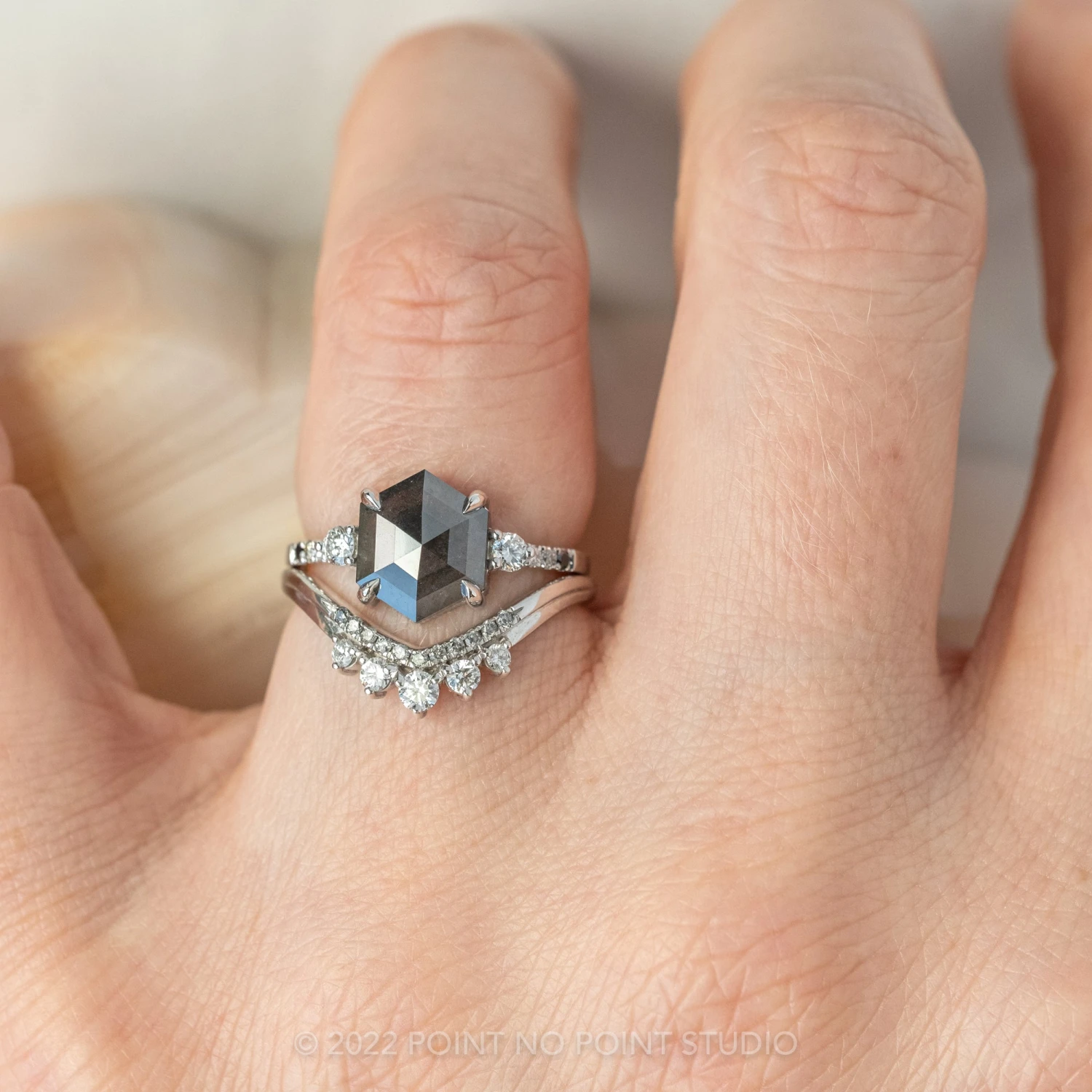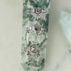 Black Speckled Hexagon Diamond Engagement Ring