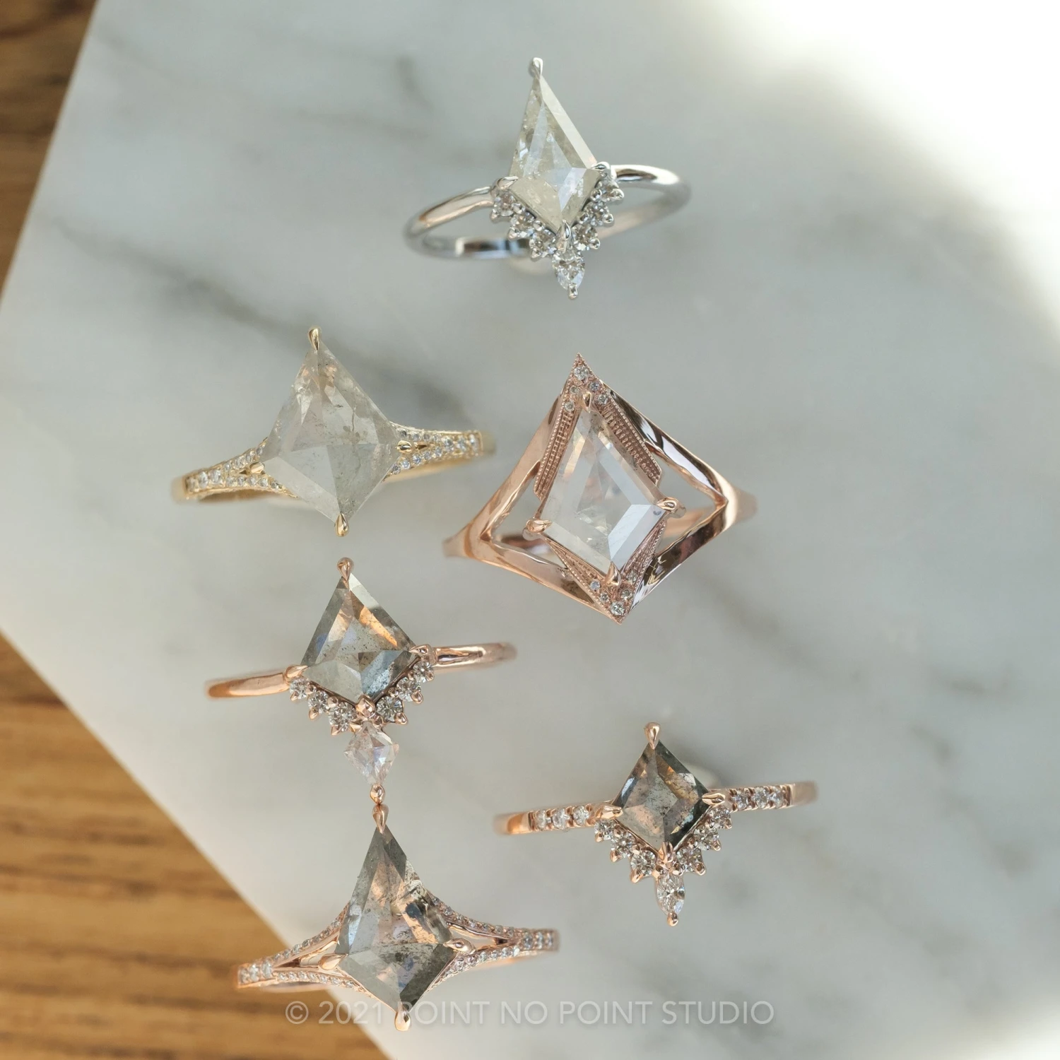 Included with your order – A Point No Point Studio digital ring certificate on a branded PNP USB drive, black velvet clam shell box, and a polishing cloth.