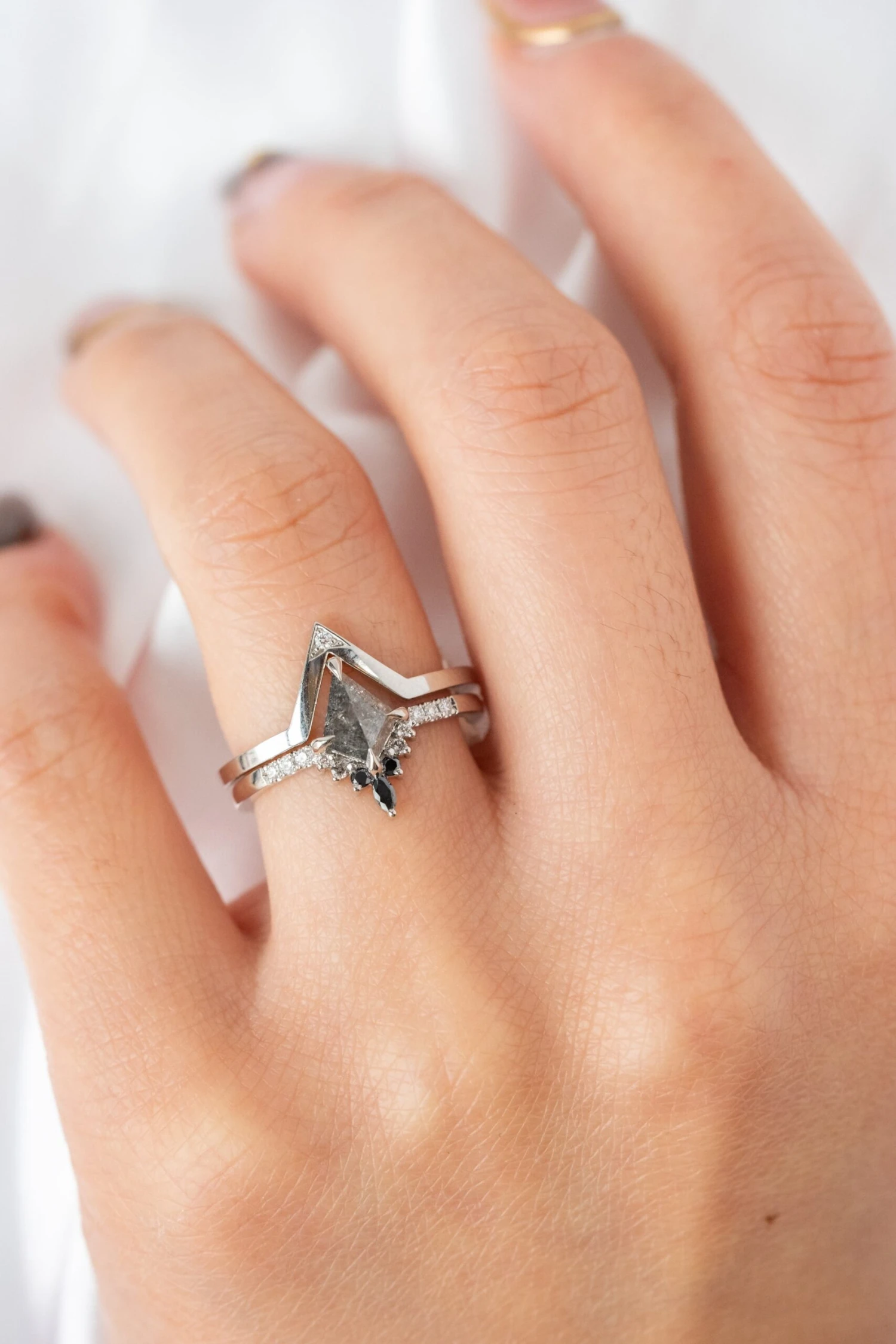 Salt and Pepper Kite Diamond Engagement Ring