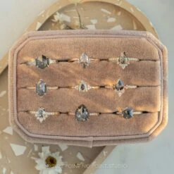 Included with your order – A Point No Point Studio digital ring certificate on a branded PNP USB drive, black velvet clam shell box, and a polishing cloth.