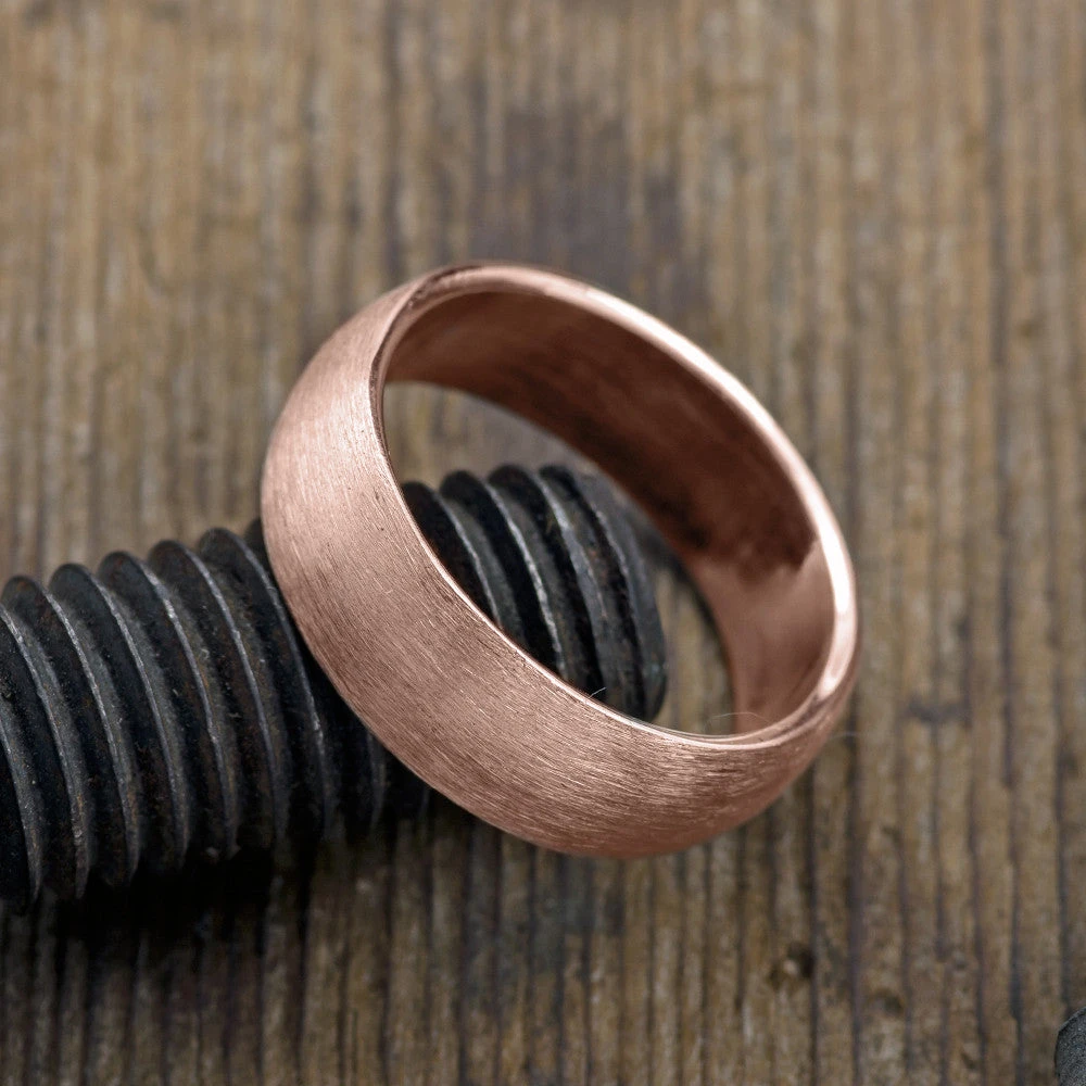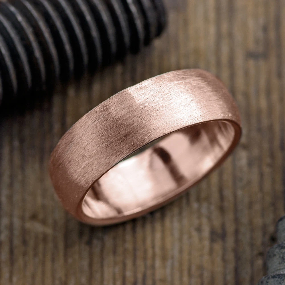 8mm 14K Rose Gold Comfort Fit Men’s Wedding Band, Half Round Matte