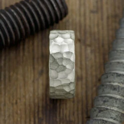 8mm 14k White Gold Mens Wedding Band, Hammered Matte