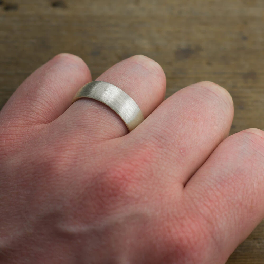 8mm 14k White Gold Mens Wedding Band, Half Round Matte