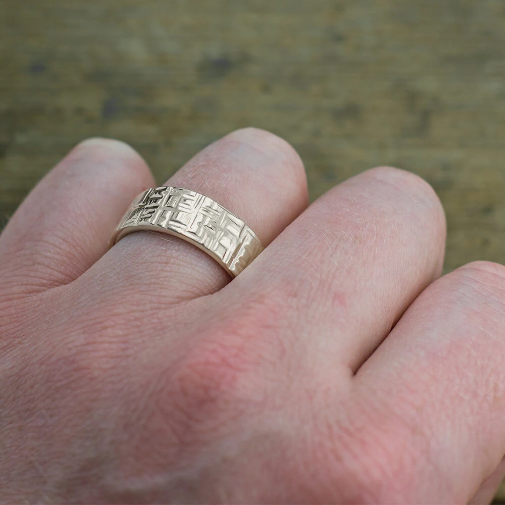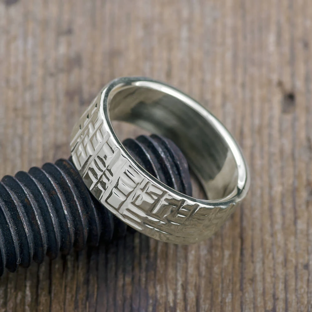 8mm 14k White Gold Mens Wedding Band, Textured Polished