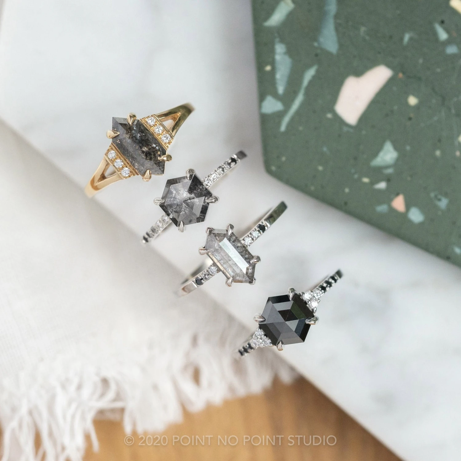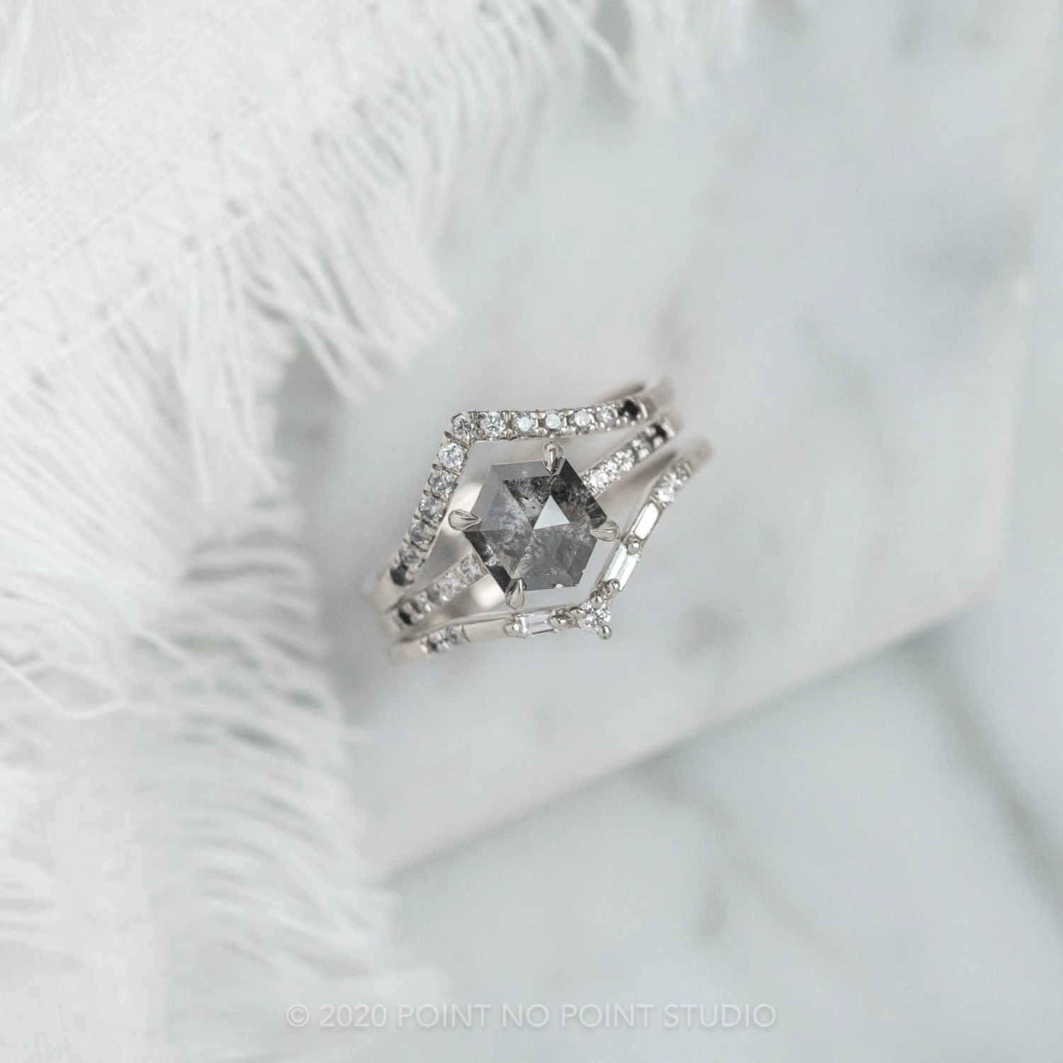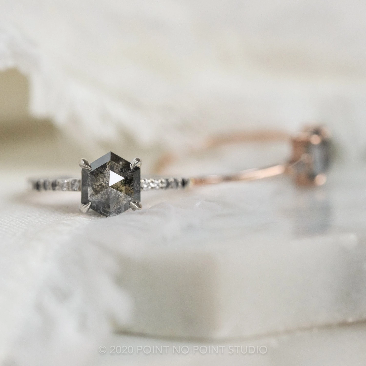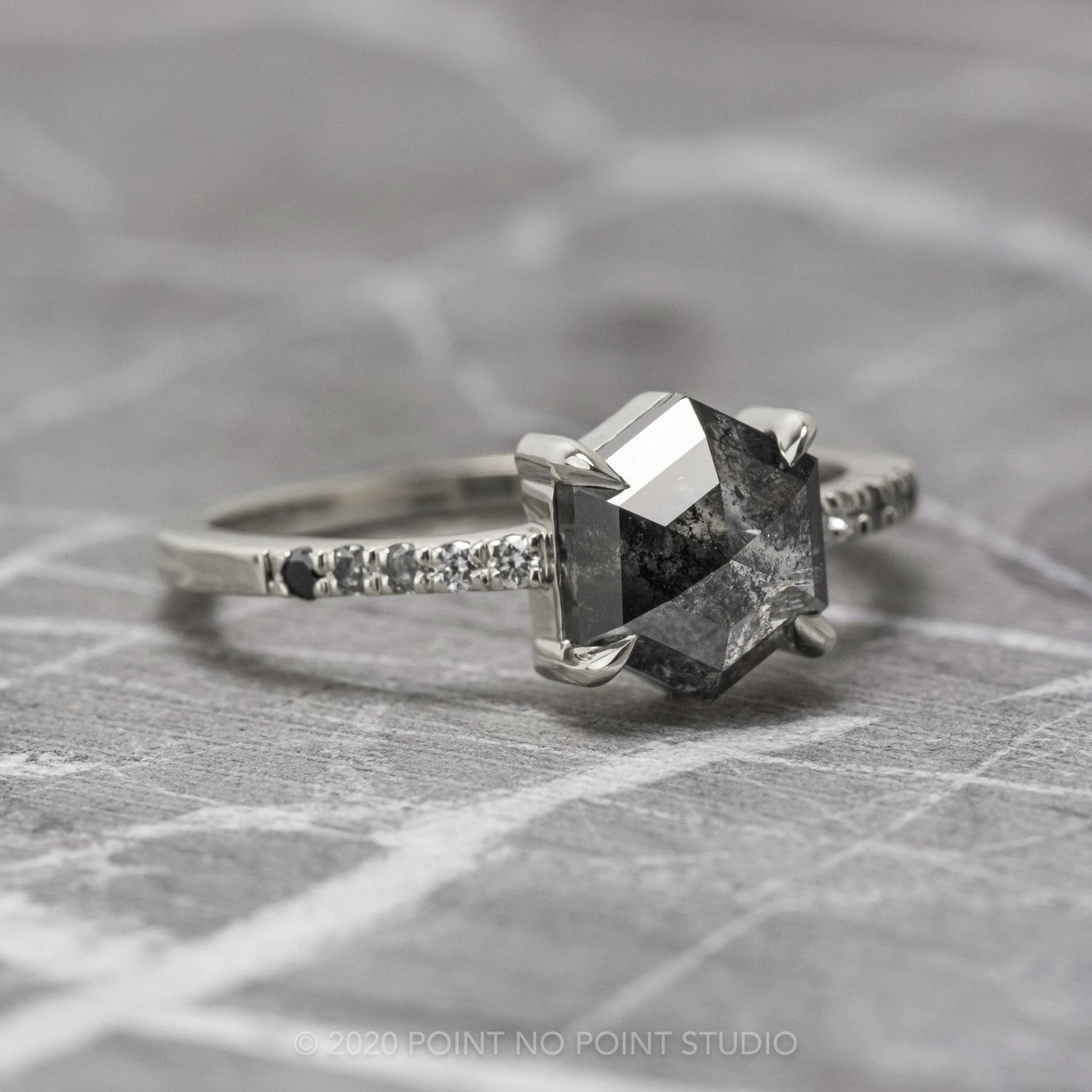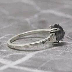Black Speckled Hexagon Diamond Engagement Ring