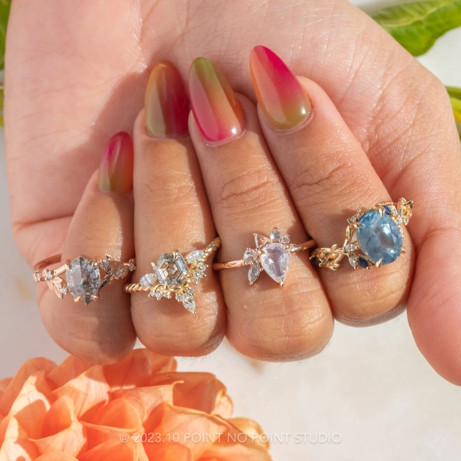 Shown pictured with our Willa, Azalea and Stardust wedding bands, sold separately here.Â