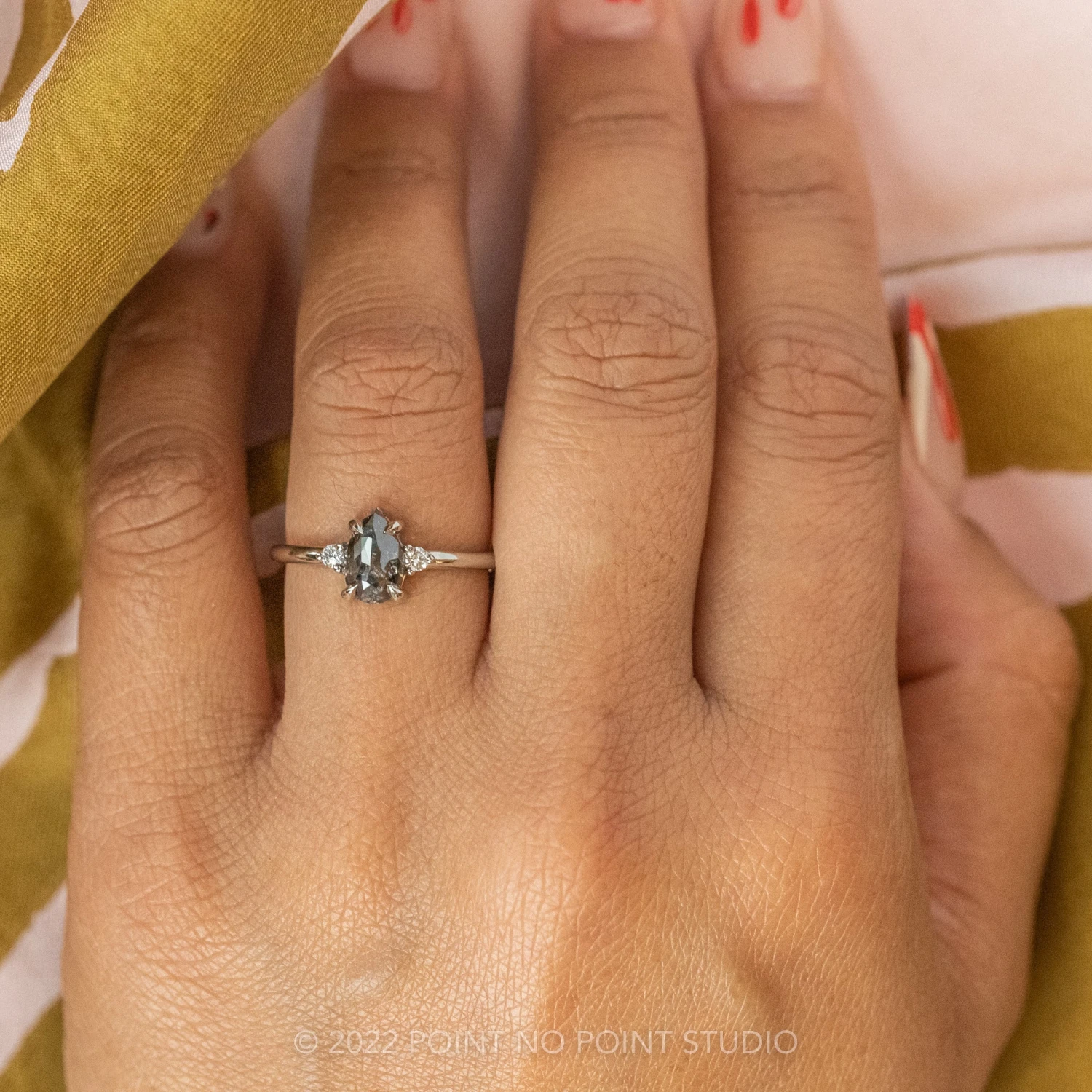 Salt and Pepper Pear Diamond Engagement Ring