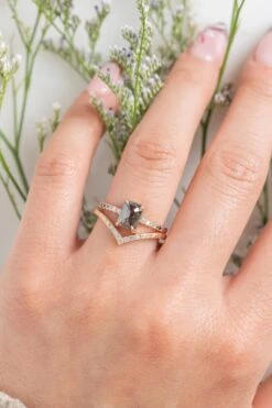 Salt and Pepper Pear Diamond Engagement Ring
