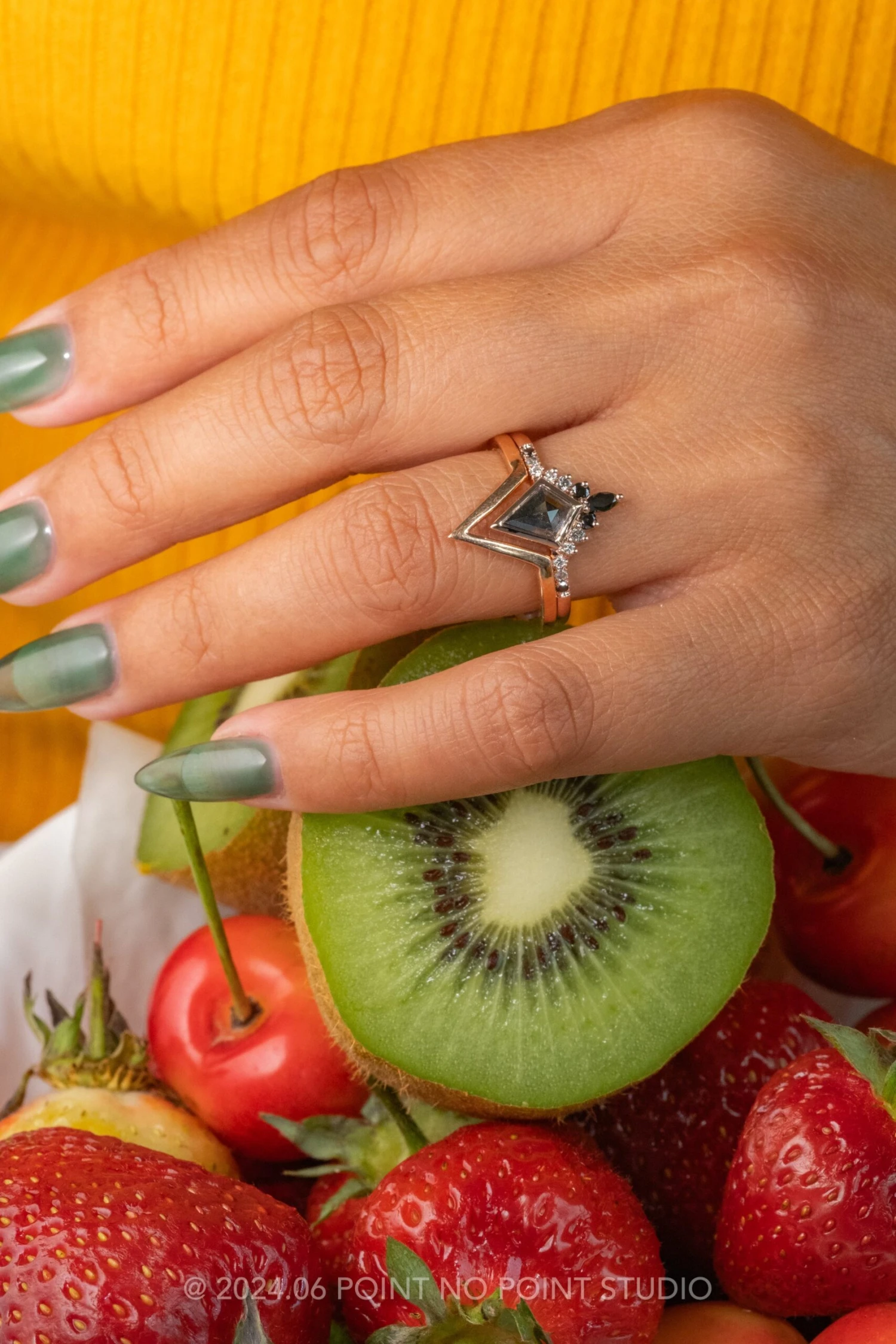 Included with your order – A Point No Point Studio digital ring certificate on a branded PNP USB drive, black velvet clam shell box, and a polishing cloth.