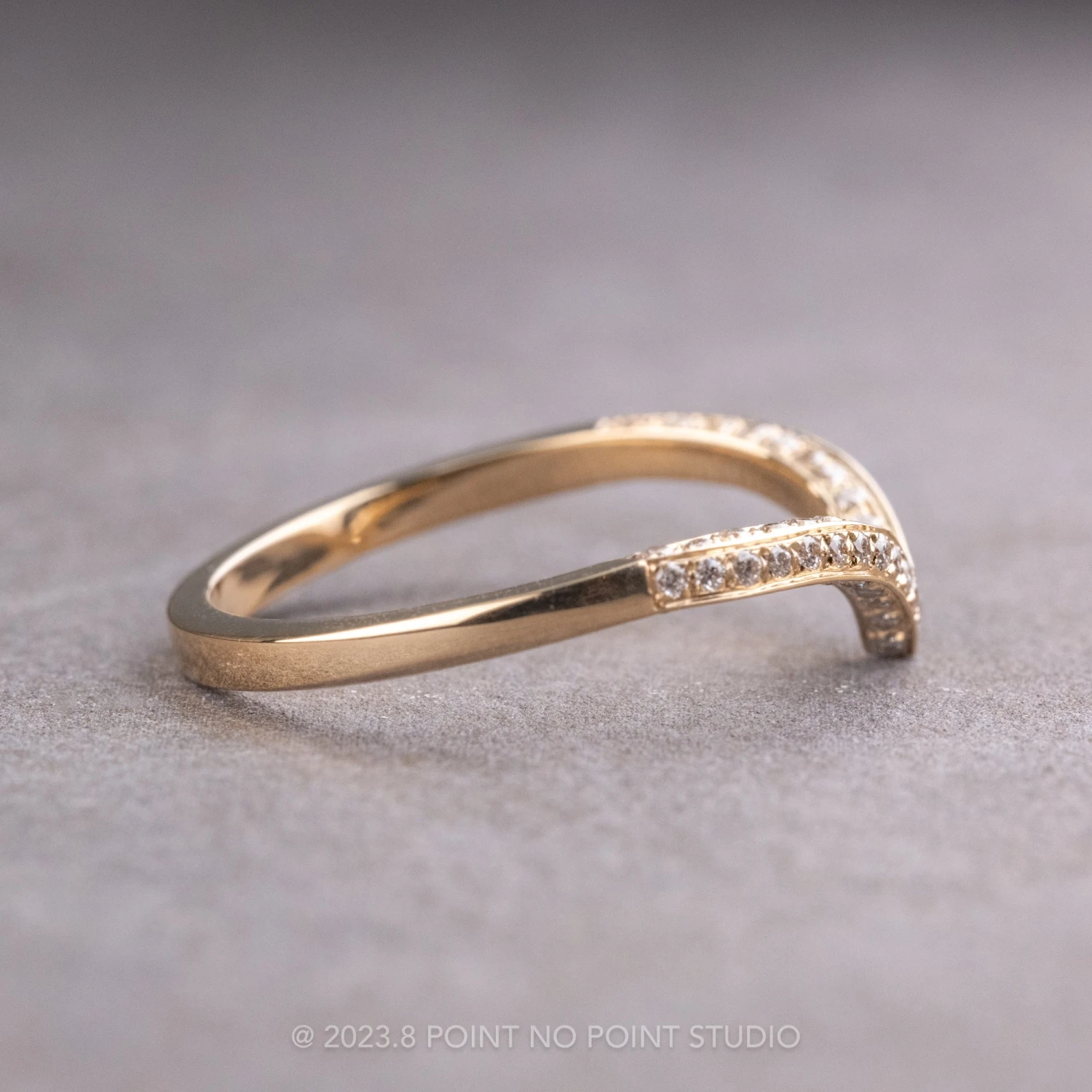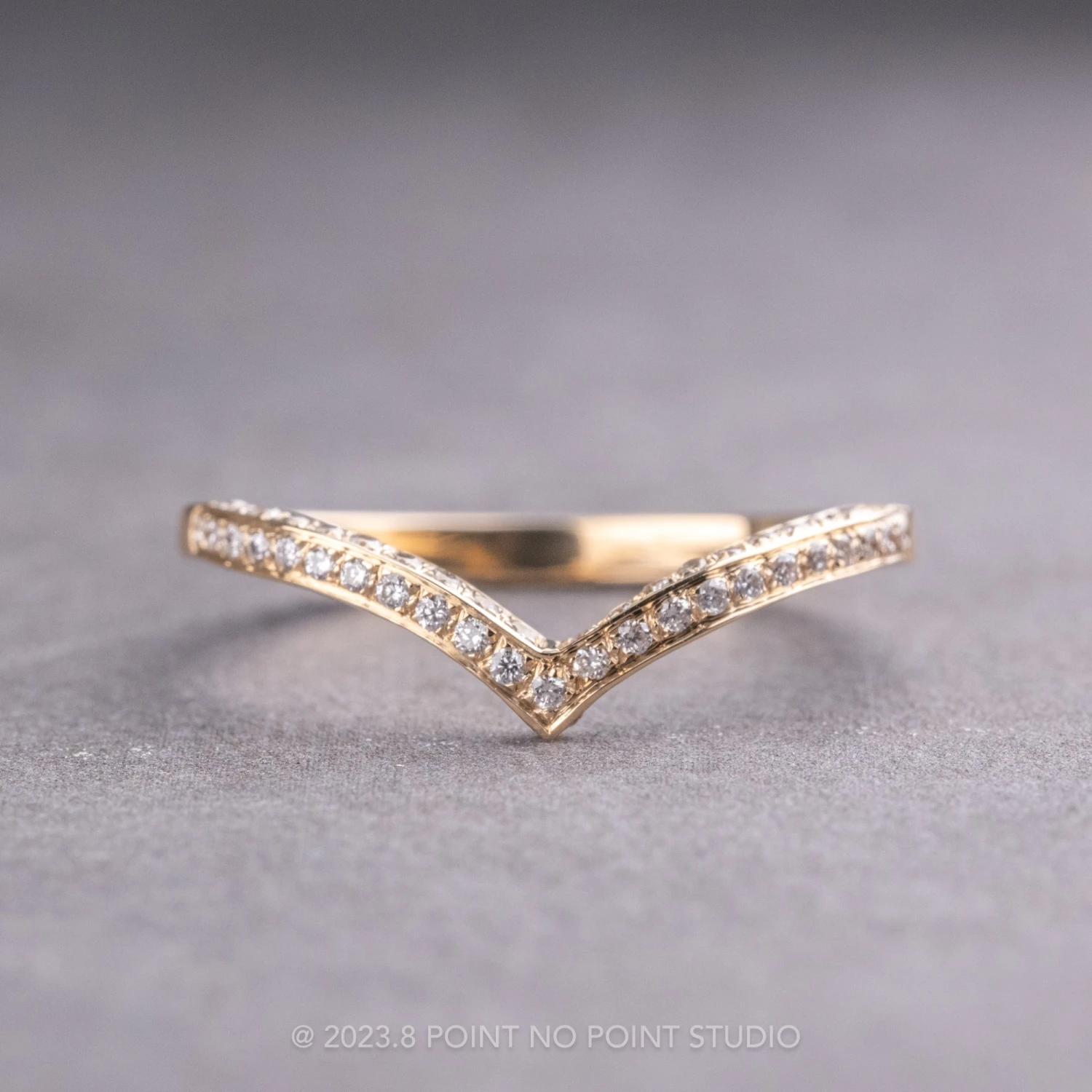 A hand crafted diamond V shaped wedding band to be worn alone, stacked in multiples, or to match any number of engagement rings!