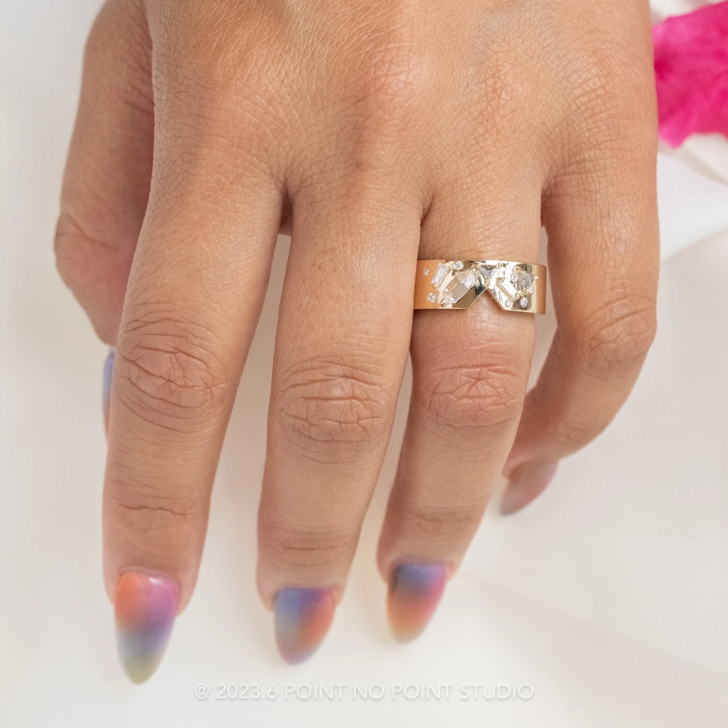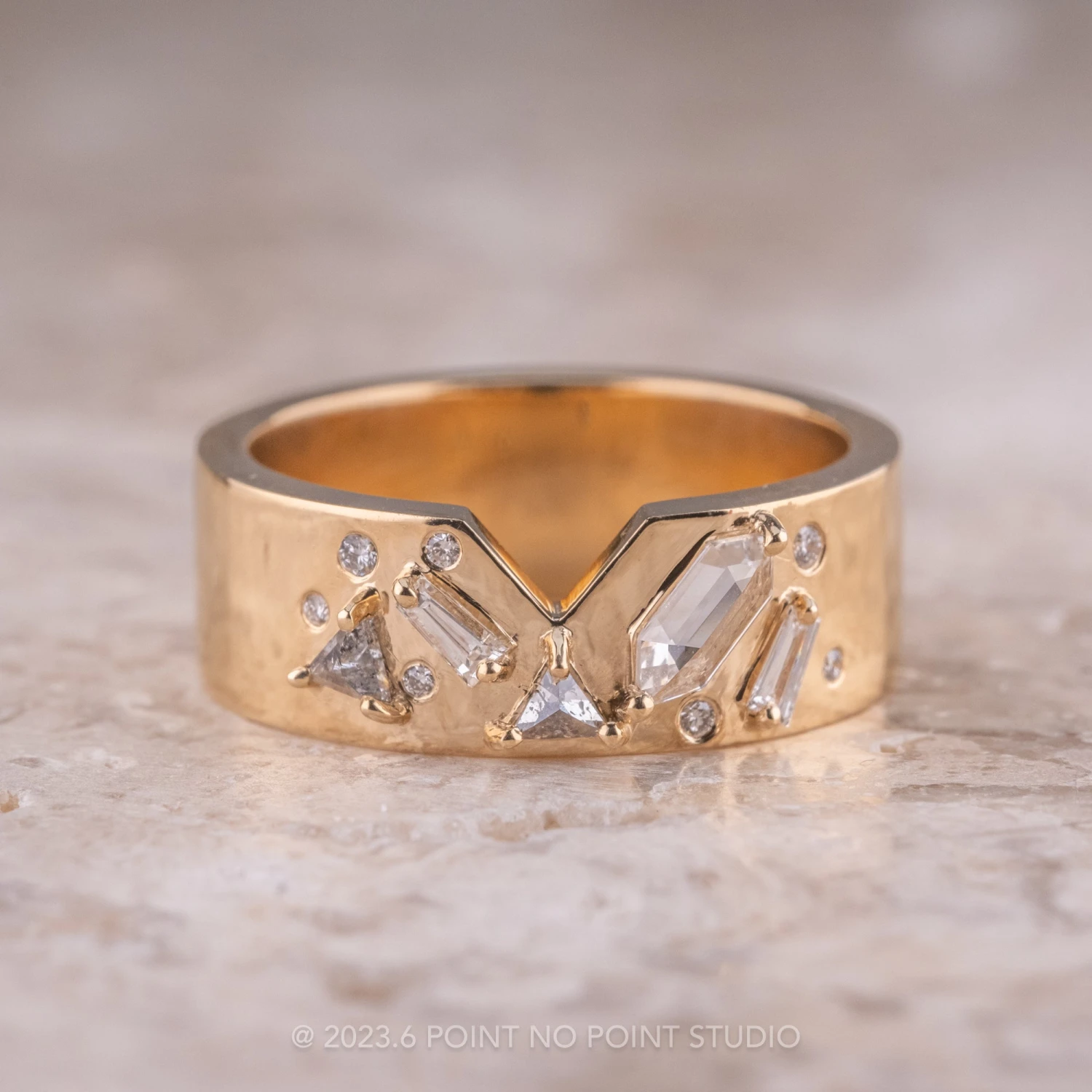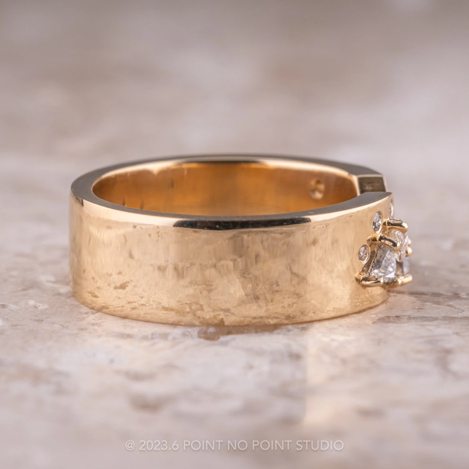 PLEASE BE CONFIDENT IN YOUR RING SIZE WHEN ORDERING THIS STYLE. We are able to safely size this ring up 1/4 size; this will be subject to normal resize fees. Any other size request will need to be evaluated on a case by case basis, additional fees may apply – please inquire at pointnopointstudio.com.