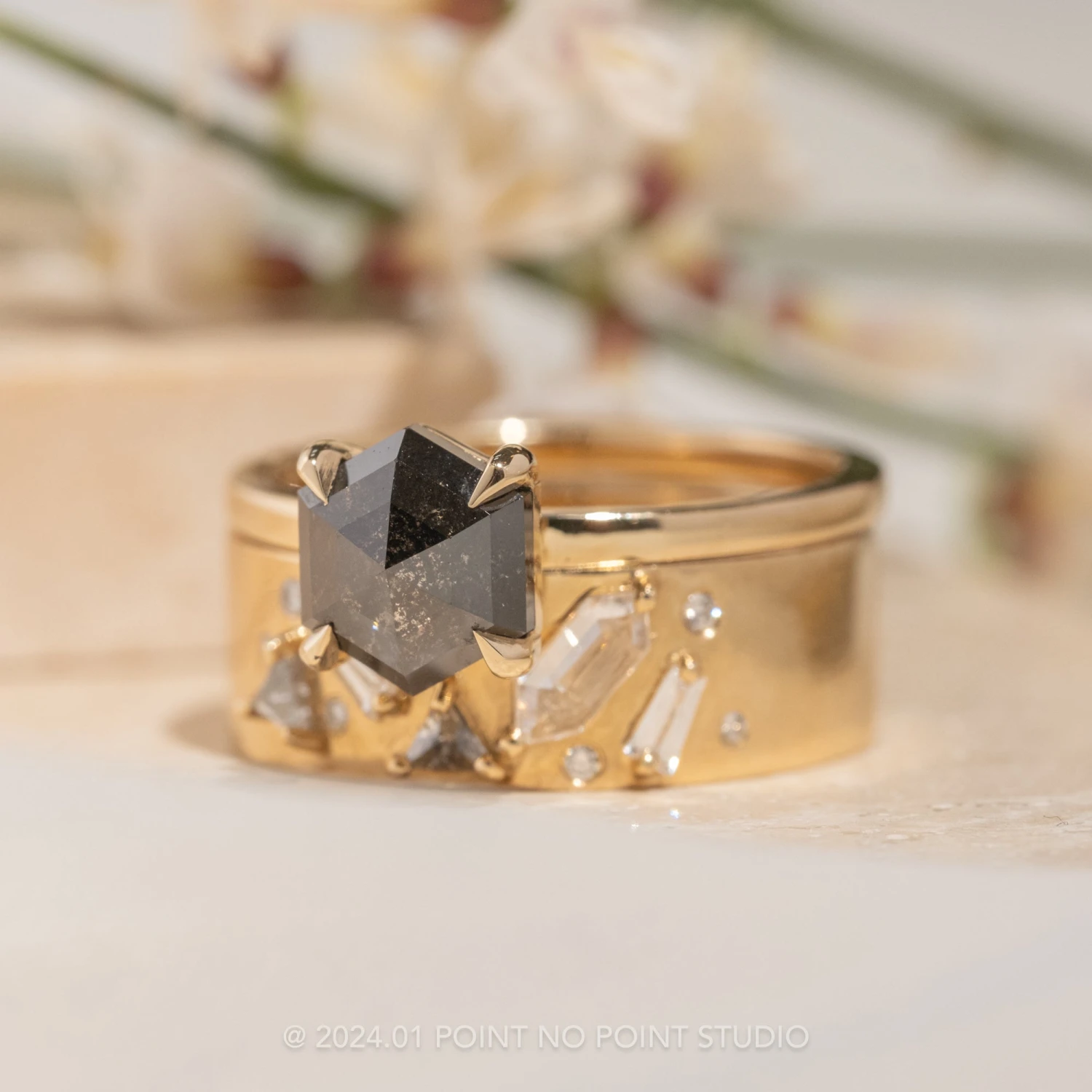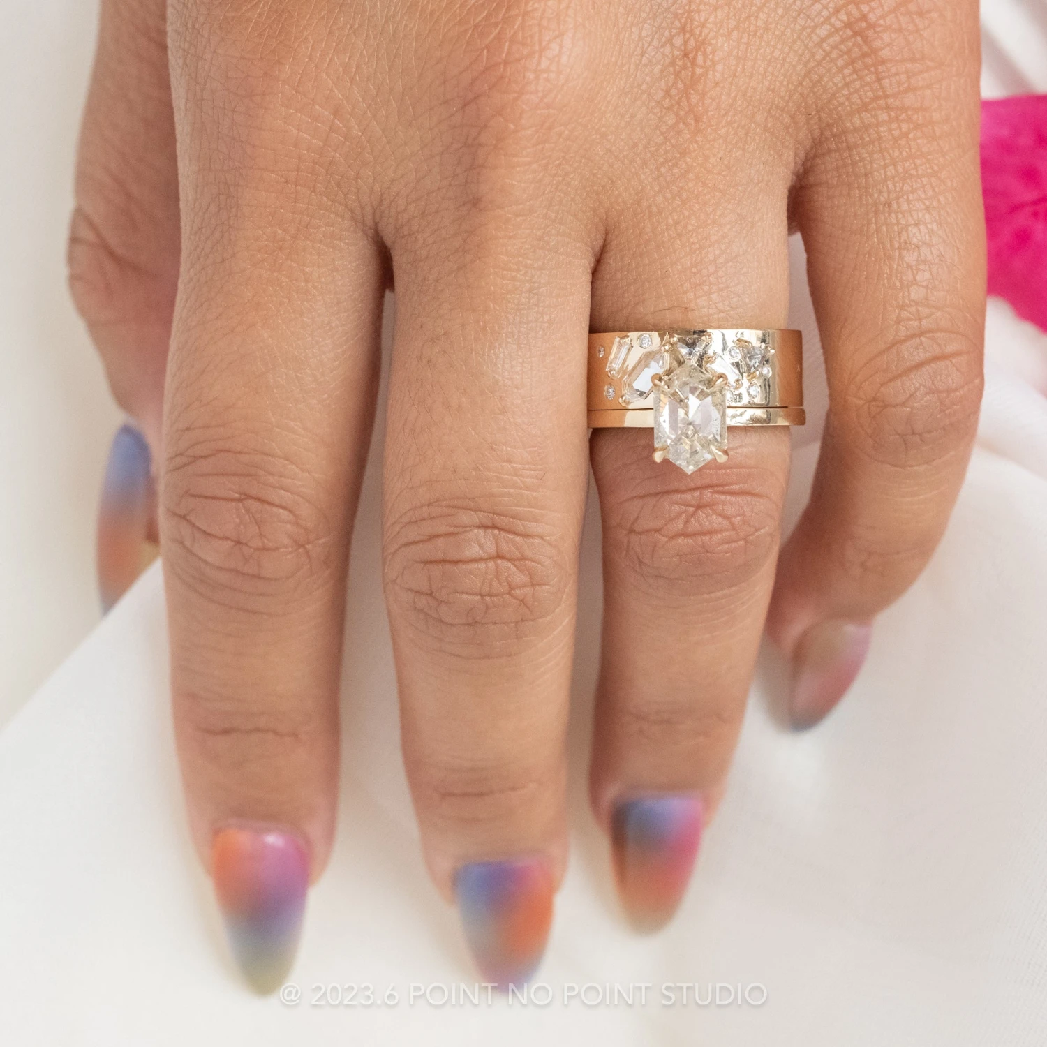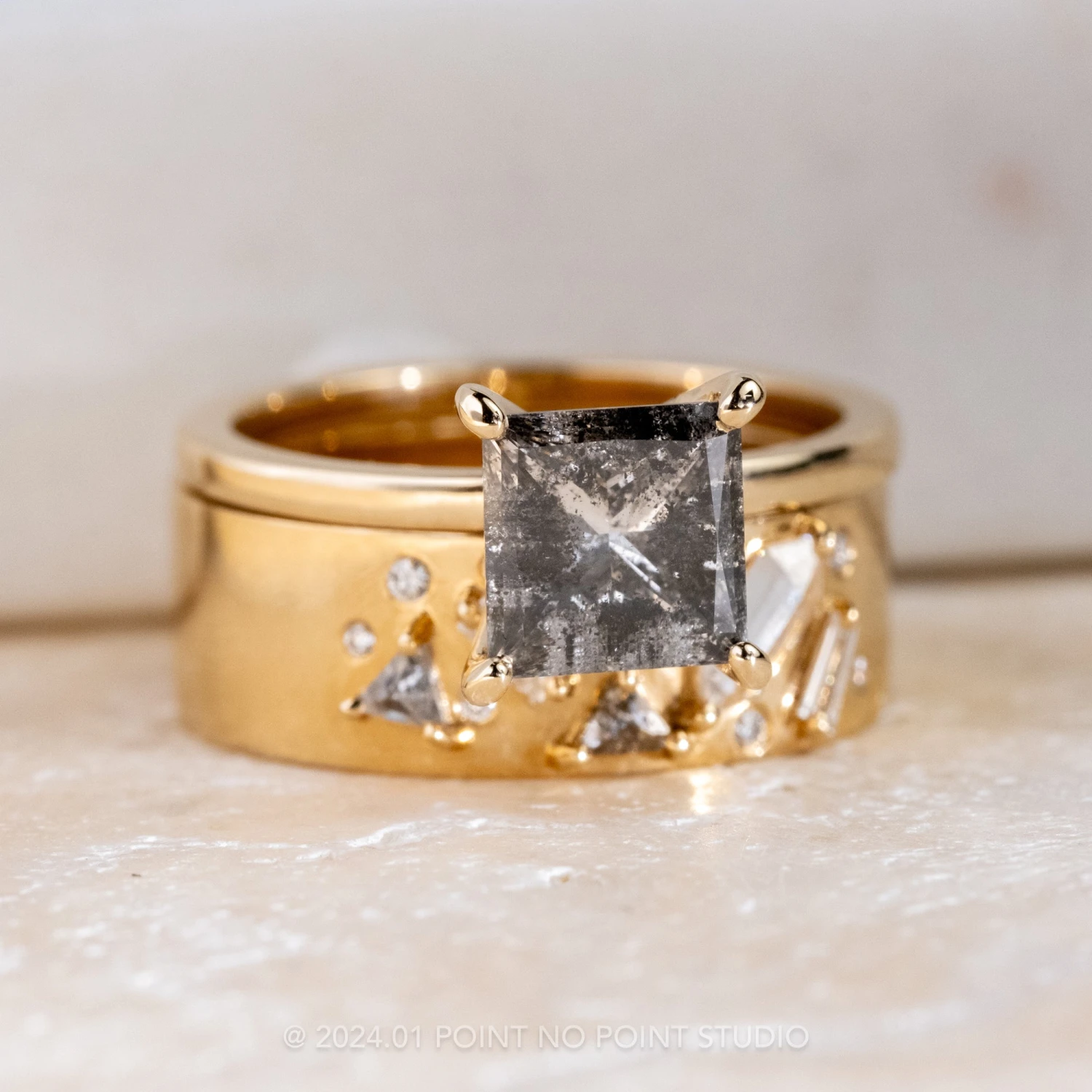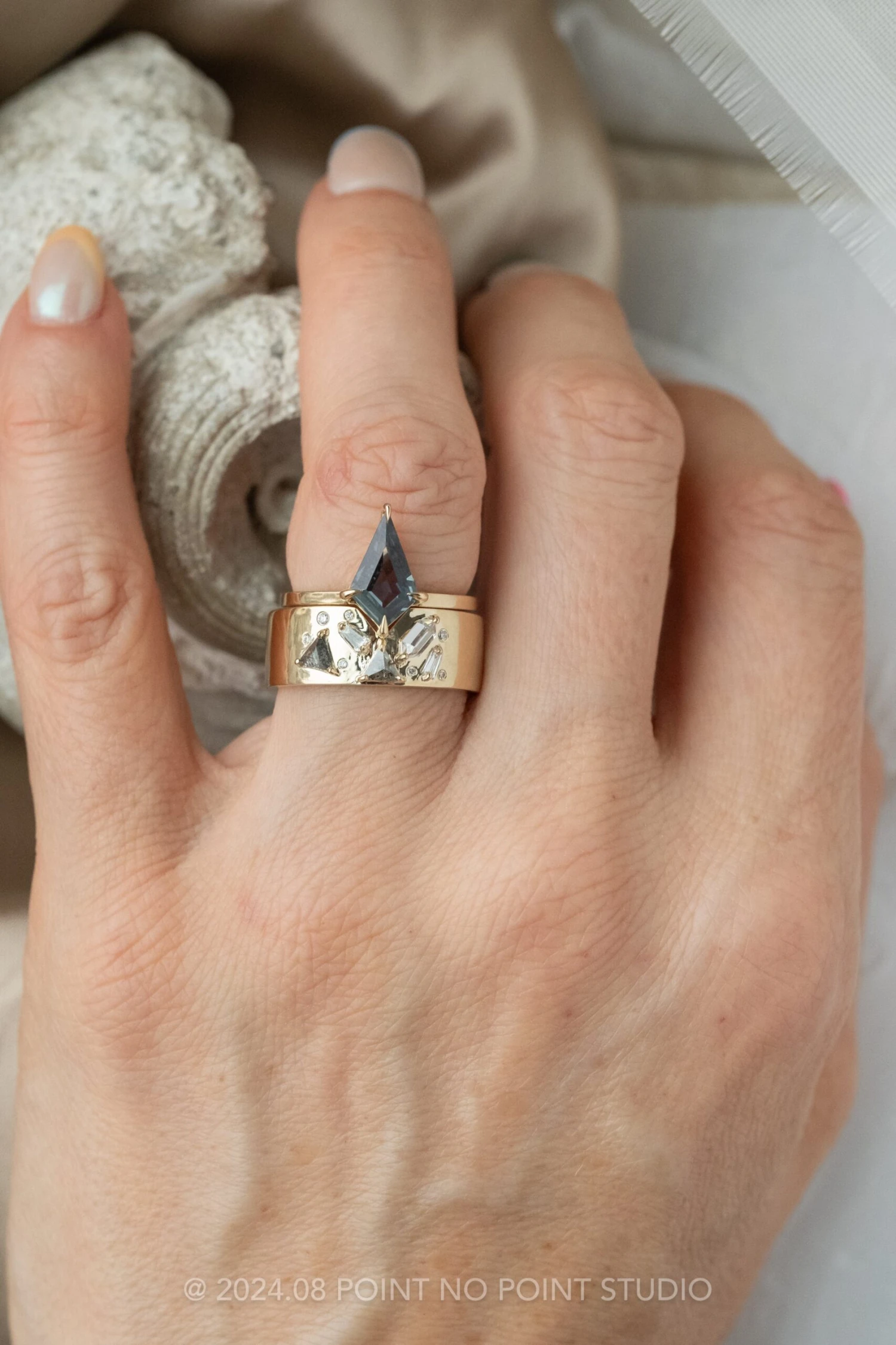 PLEASE BE CONFIDENT IN YOUR RING SIZE WHEN ORDERING THIS STYLE. We are able to safely size this ring up 1/4 size; this will be subject to normal resize fees. Any other size request will need to be evaluated on a case by case basis, additional fees may apply – please inquire at pointnopointstudio.com.