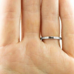 This unique band is made of eco friendly recycled Platinum – perfect to wear as a wedding band, or alone as a stylish right hand ring or anniversary ring. The entirety of the band is polished smooth, and fits comfortably around your finger.