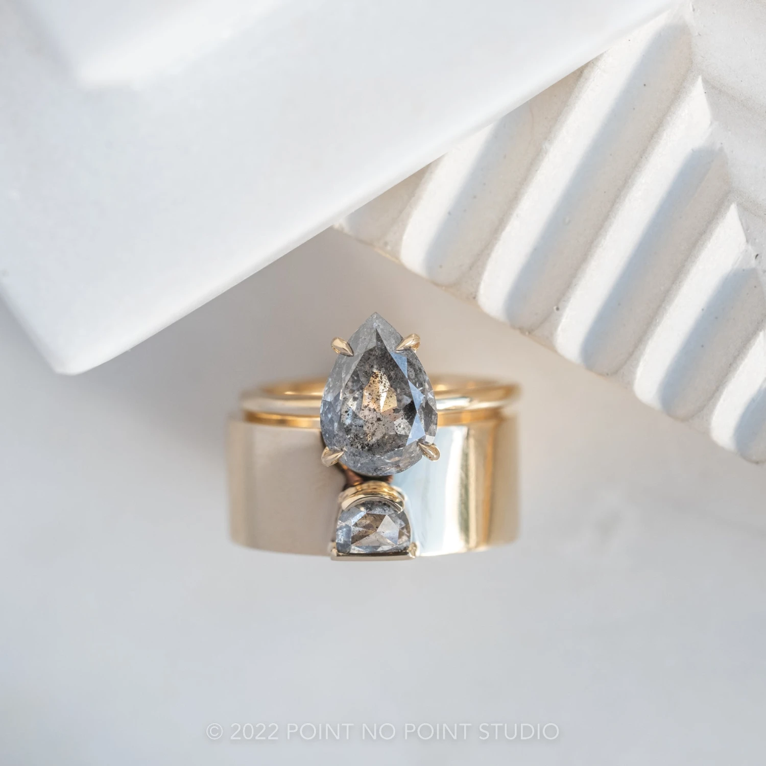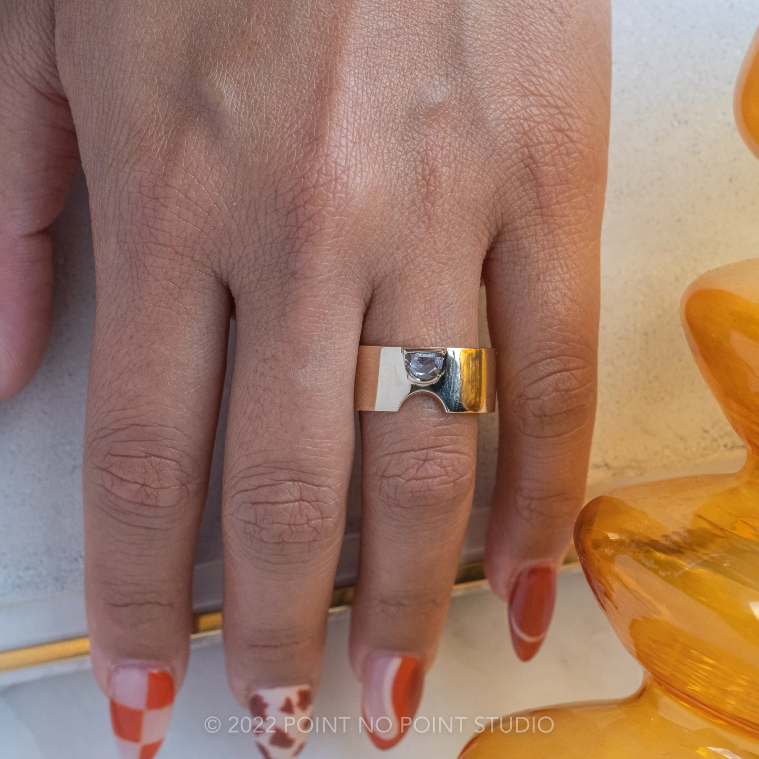 PLEASE BE CONFIDENT IN YOUR RING SIZE WHEN ORDERING THIS STYLE. We are able to safely size this ring up 1/4 size; this will be subject to normal resize fees. Any other size request will need to be evaluated on a case by case basis, additional fees may apply – please inquire at pointnopointstudio.com.