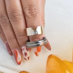 **We can create a cutout with a more generic shape to accommodate your ring, or we can create a more exacting fit by cutting out slots for the setting/prongs to sit into, both are shown in the images. Contact [email protected] to discuss which style you prefer!