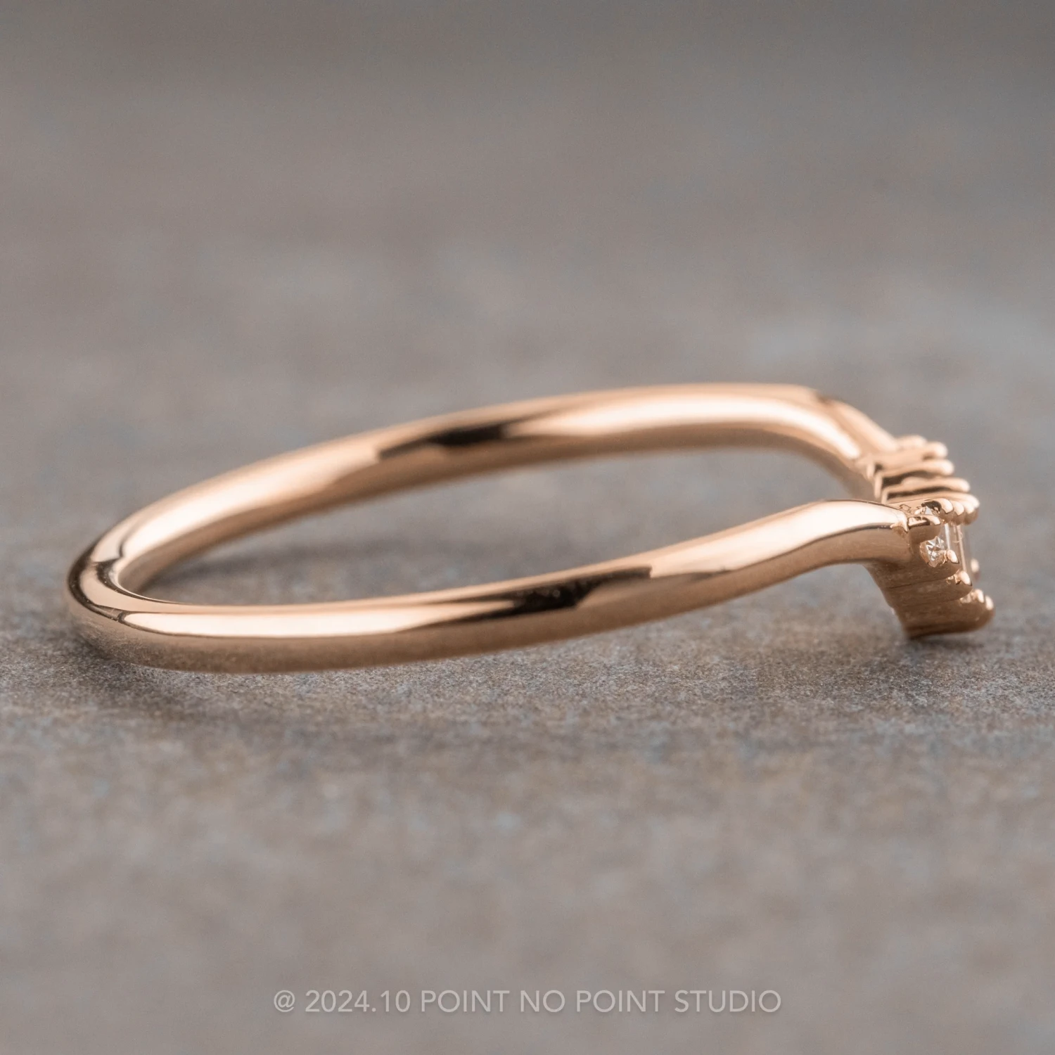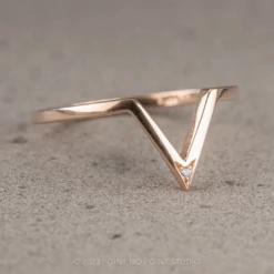 The entire Wren ring is made of 14k peach gold; the settings for the stones were made to be low profile and comfortable for everyday wear. The rounded ring band is approximately 1.7mm in width.