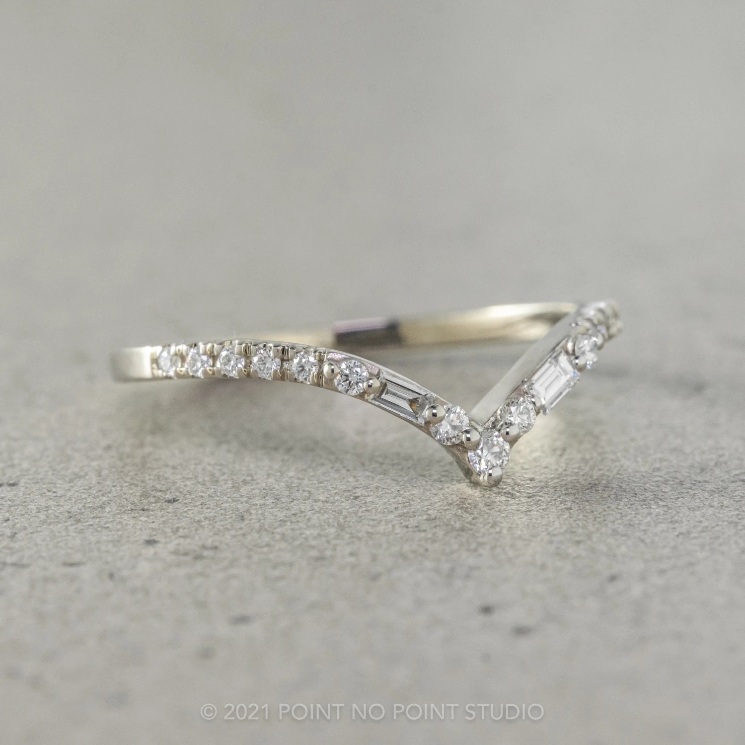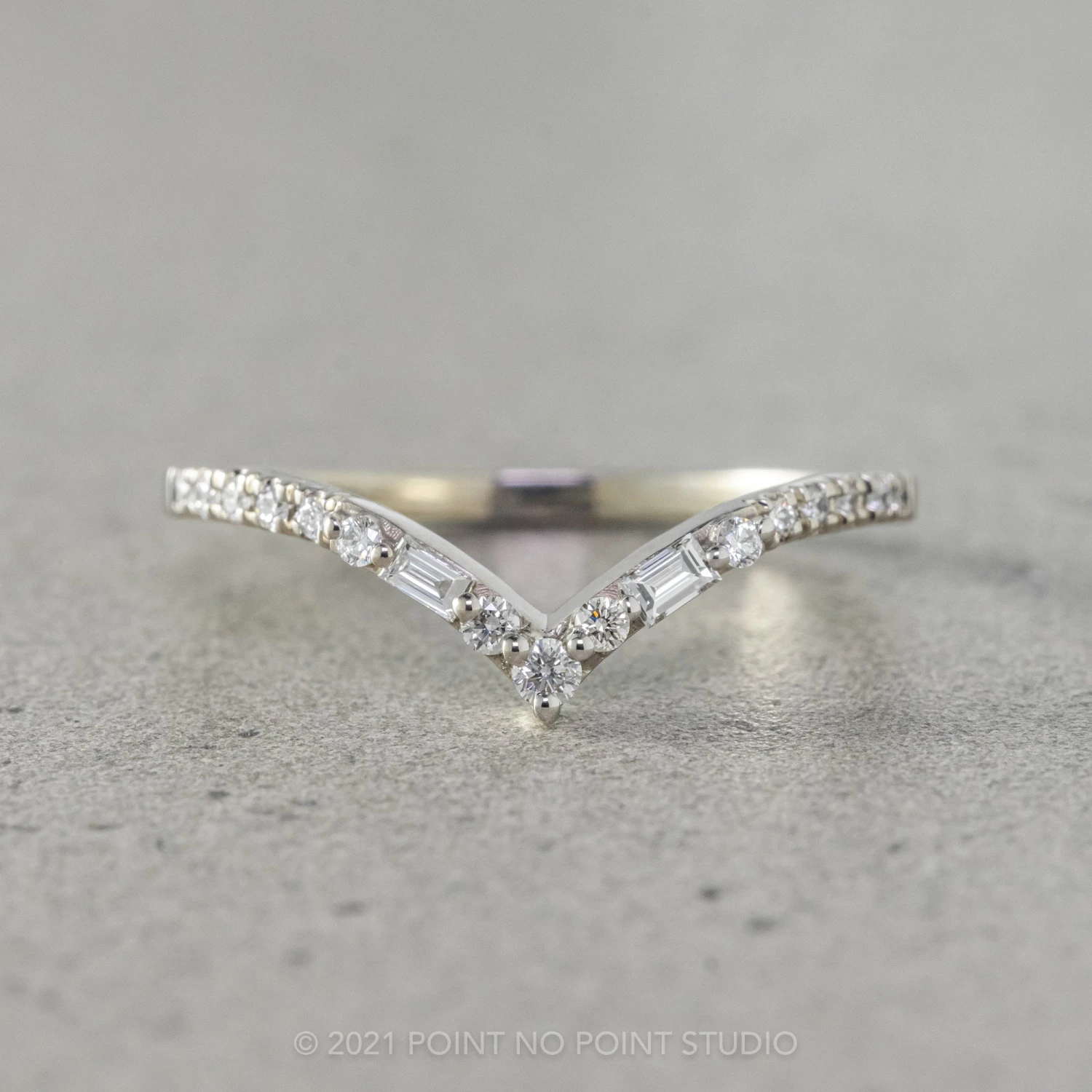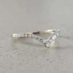 A simple hand crafted V shaped Baguette Diamond Band band to be worn alone, stacked in multiples, or to match any number of engagement rings!