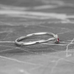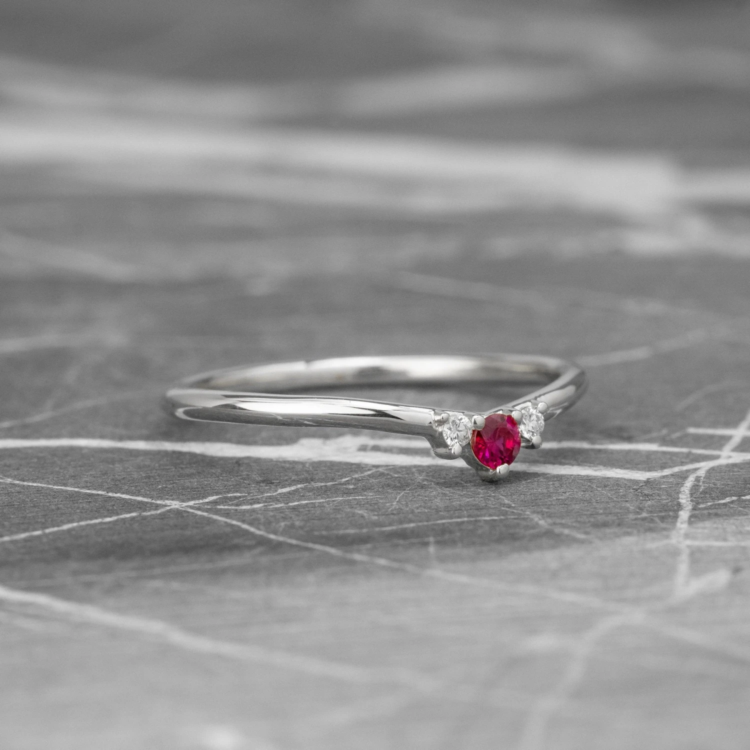 This timeless and unique ruby and diamond wedding ring features striking natural GHSI brilliant cut diamonds around a beautiful natural ruby. The ring features a soft diamond contoured curve, which will flatter many engagement ring styles.