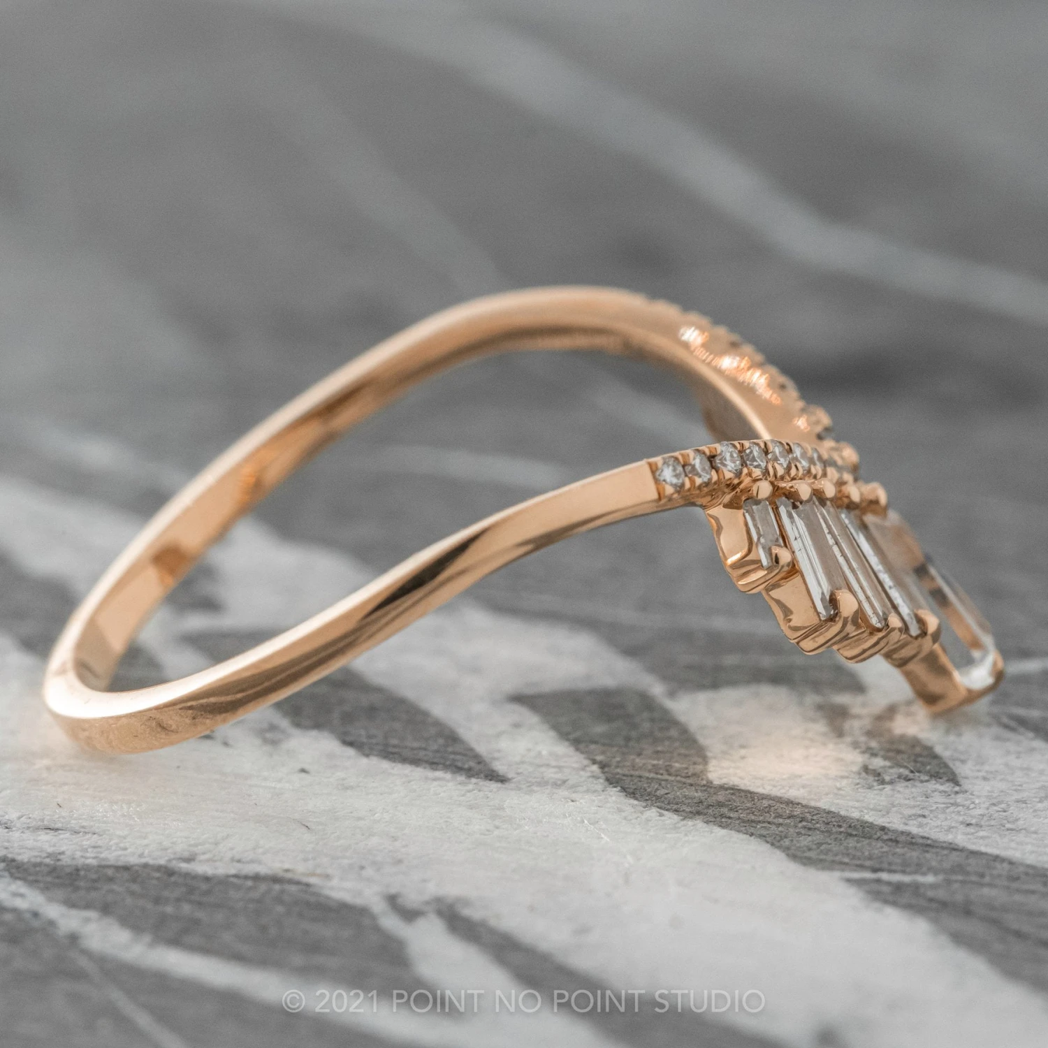 Reach out to [email protected] and let us know if you have an engagement ring from us that you would like this to contour to.Â