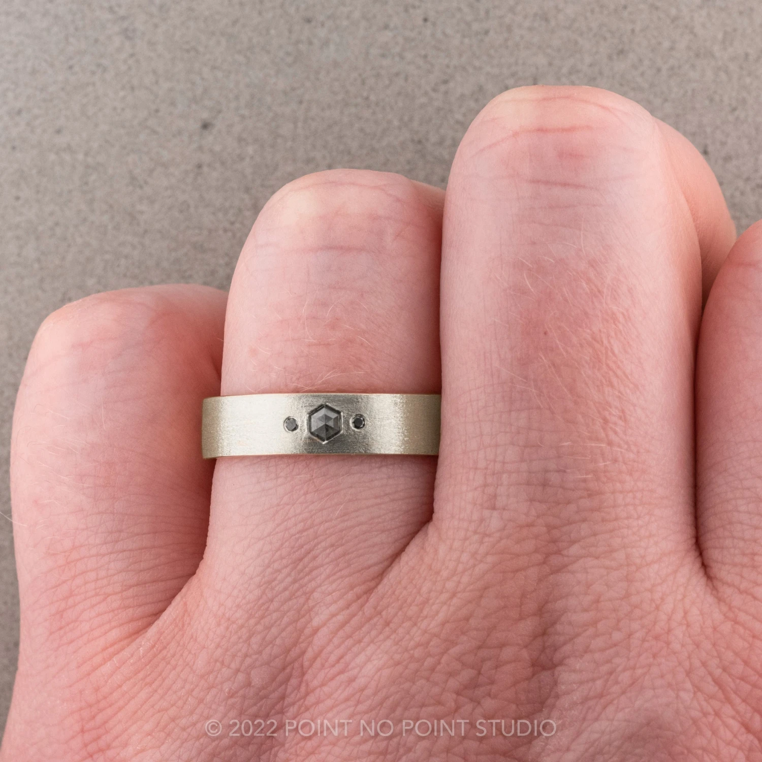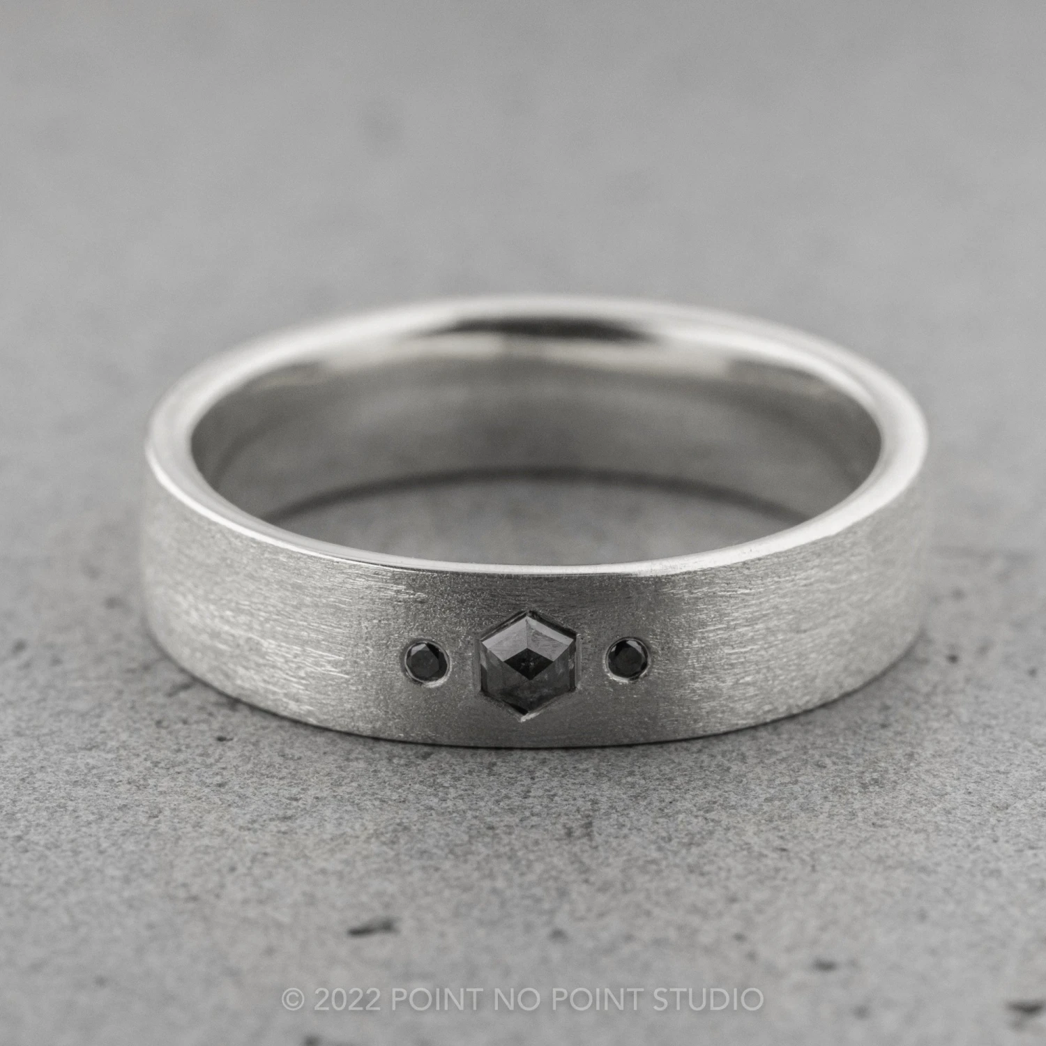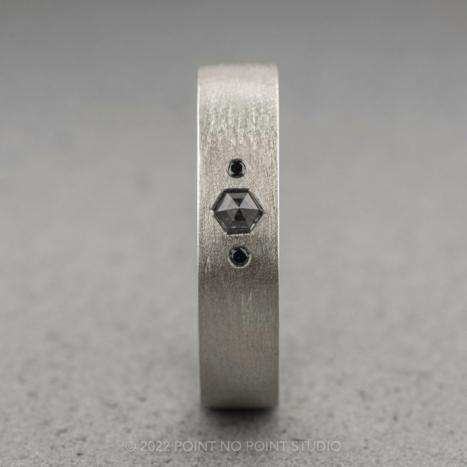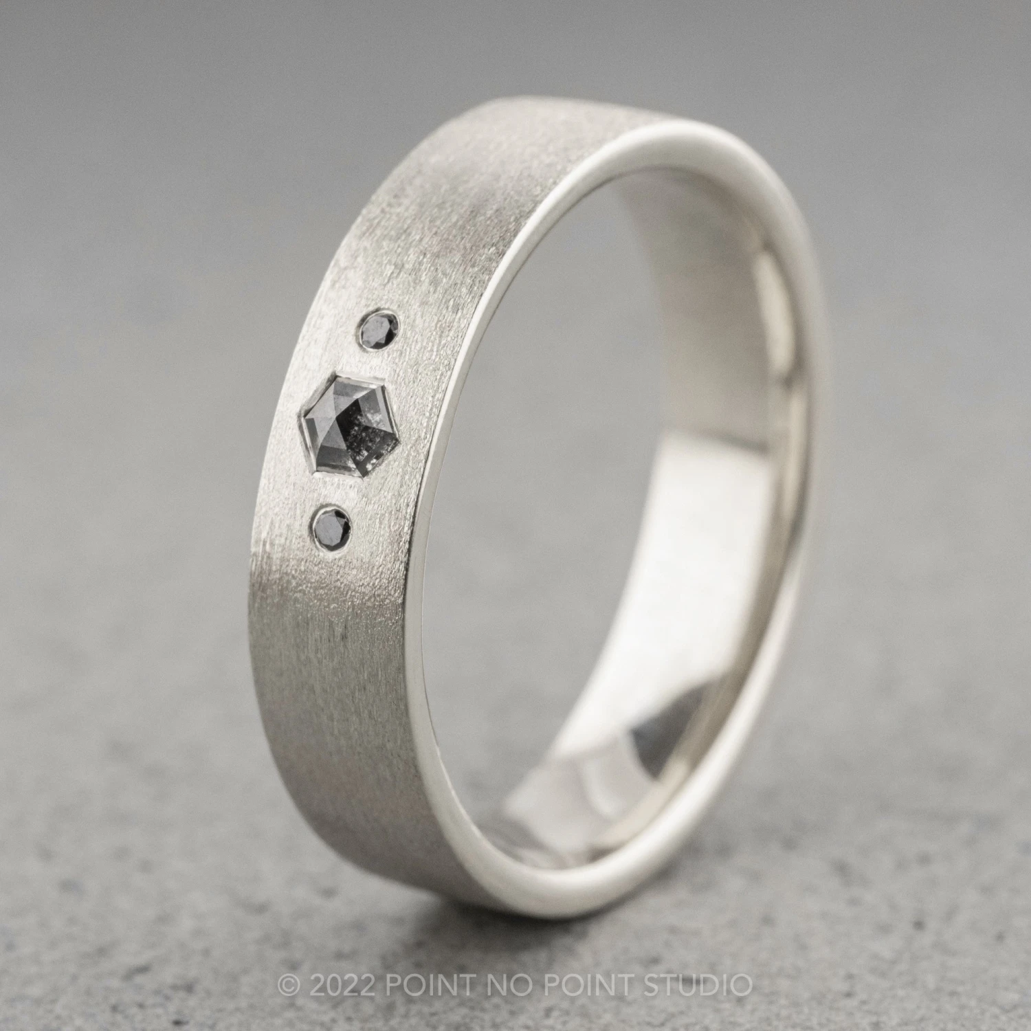 Salt and Pepper Hexagon Diamond Mens Wedding Band
