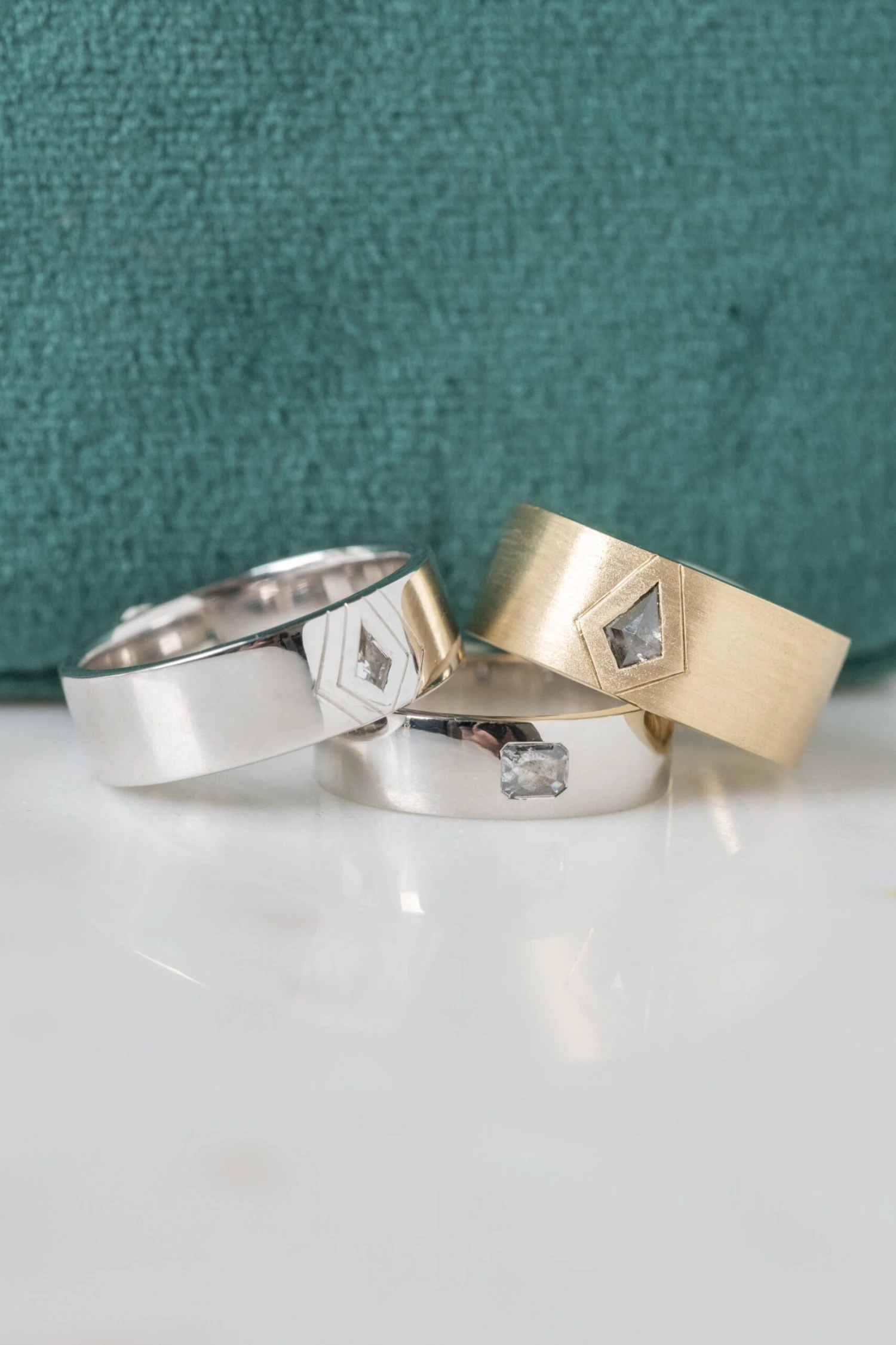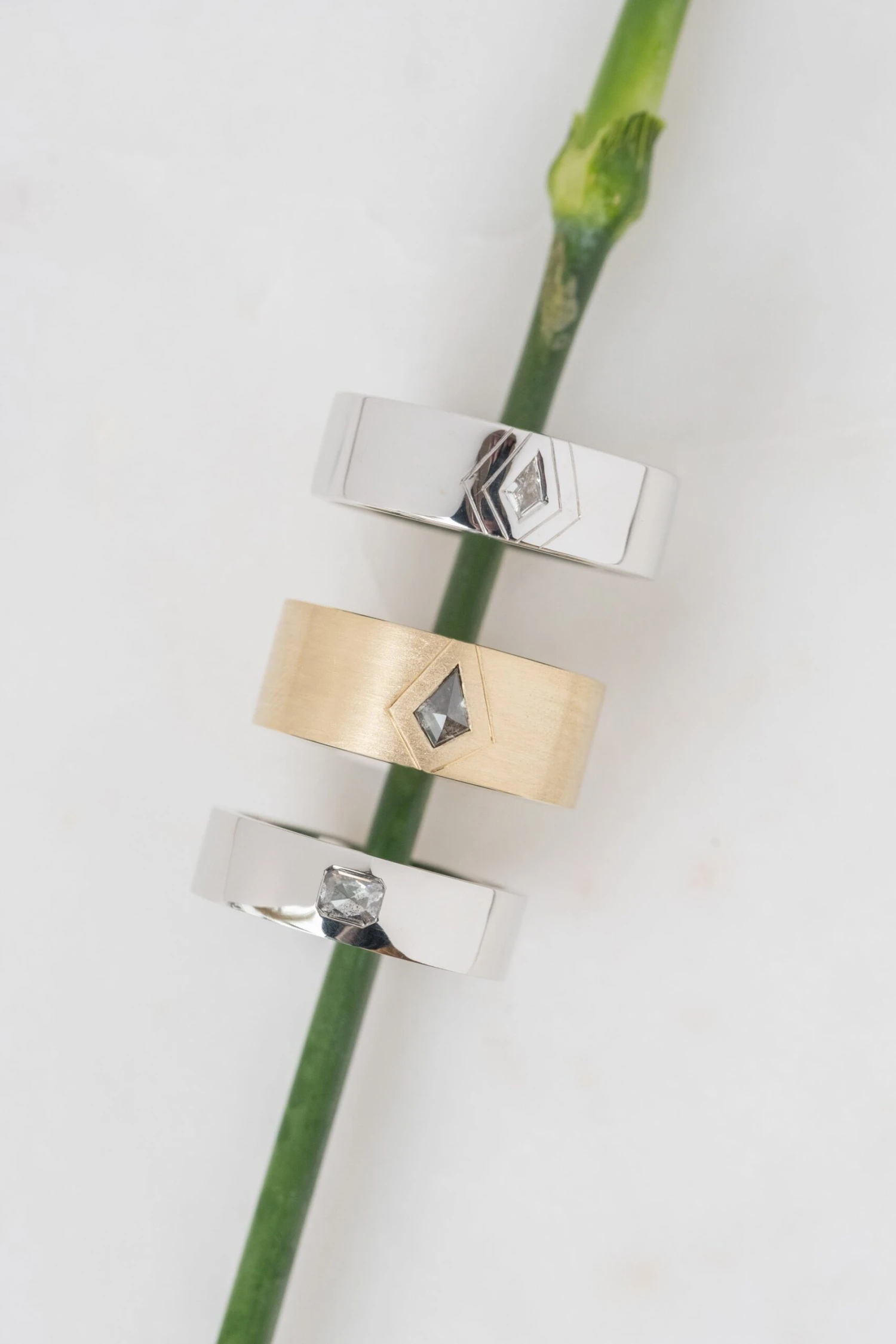 Salt and Pepper Kite Diamond Mens Wedding Band